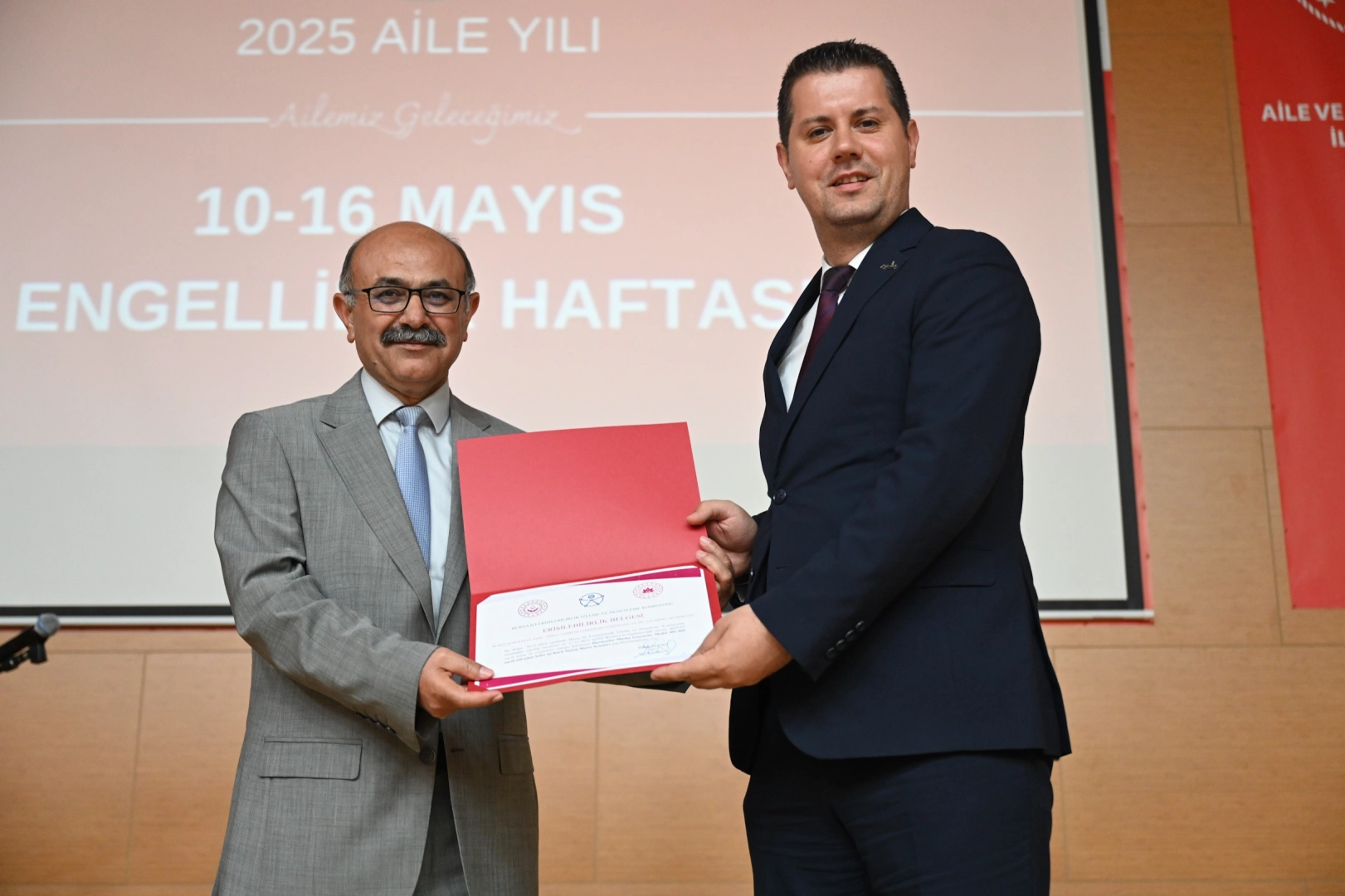 Bursa Aile ve Sosyal Hizmetler İl Müdürlüğü tarafından 10-16 Mayıs Engelliler Haftası nedeniyle 'Ailemiz, Farklılıklarımız En Büyük Zenginliğimiz' isimli program düzenlendi. Programa, Vali Yardımcısı Mustafa Güney, Büyükşehir Belediyesi Başkanvekili Metin Tunçel, Aile ve Sosyal Hizmetler İl Müdürü Faruk Uysal, BURULAŞ Genel Müdürü Fahrettin Beşli, BURFAŞ Genel Müdürü Erhan Pınar ve vatandaşlar katıldı. Engelli hizmetleri ile ilgili örnek çalışmalar yapan kurumlara, Vali Yardımcısı Mustafa Güney tarafından ‘Erişilebilirlik Belgesi’ takdim edildi.