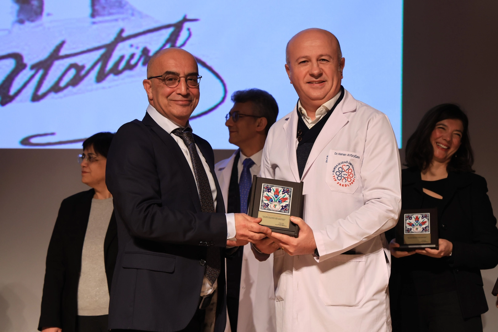 Prof. Dr. Mete Cengiz Kültür Merkezinde gerçekleştirilen törene BUÜ Rektörü Prof. Dr. Ferudun Yılmaz, Rektör Yardımcısı Prof. Dr. İrfan Kırıştıoğlu, Tıp Fakültesi Dekanı Prof. Dr. Funda Coşkun, Bursa Büyükşehir Belediyesi Genel Sekreter Yardımcısı Mehmet Emin Direkçi, Bursa Tabip Odası Başkanı Dr. Kadir Binbaş, BUÜ Hastanesi Başhekimi Prof. Dr. Halil Sağlam, Bursa Kent Konseyi Başkanı Prof. Dr. Ertuğrul Aksoy, akademisyenler ve öğrenciler katıldı.