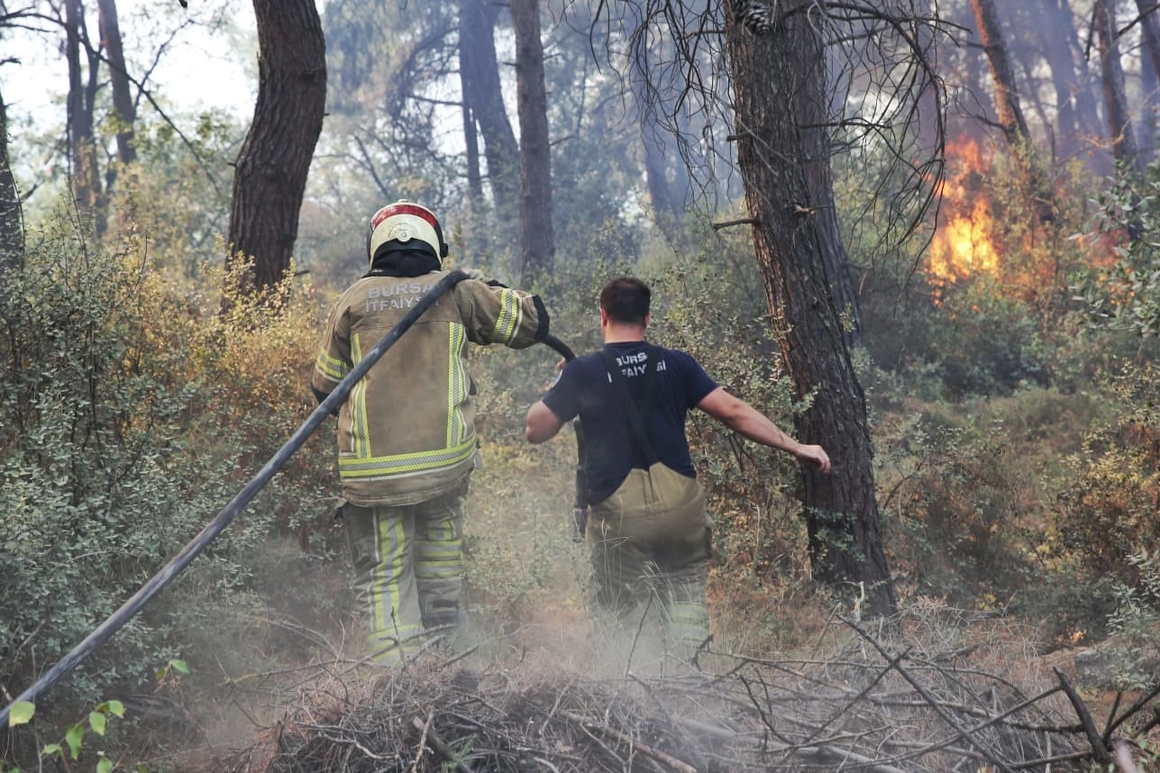 Osmangazi ilçesine bağlı Gündoğdu Mahallesi’nde çıkan orman yangınına Bursa Büyükşehir Belediyesi itfaiye ekipleri ile birlikte 11 helikopter, 3 uçak ve 240'den fazla personel ile onlarca arazöz ve su tankeri de söndürme çalışmalarında yer alıyor. Yaz boyunca kentte çıkan yangınlar nedeniyle büyük problemlerin yaşandığını hatırlatan Başkan Bozbey, "Anız yangınları nedeniyle tahrip olan alanlar bizi son derece üzüyor. Anız yakmayın, yakanlara da müsaade etmeyin. Bunu defalarca hatırlatıyor, vatandaşlarımızı uyarıyoruz. Belki uzun zaman alacak ama yanan alanlarımızı da yeşerterek durumu telafi edeceğiz" ifadelerini kullandı.