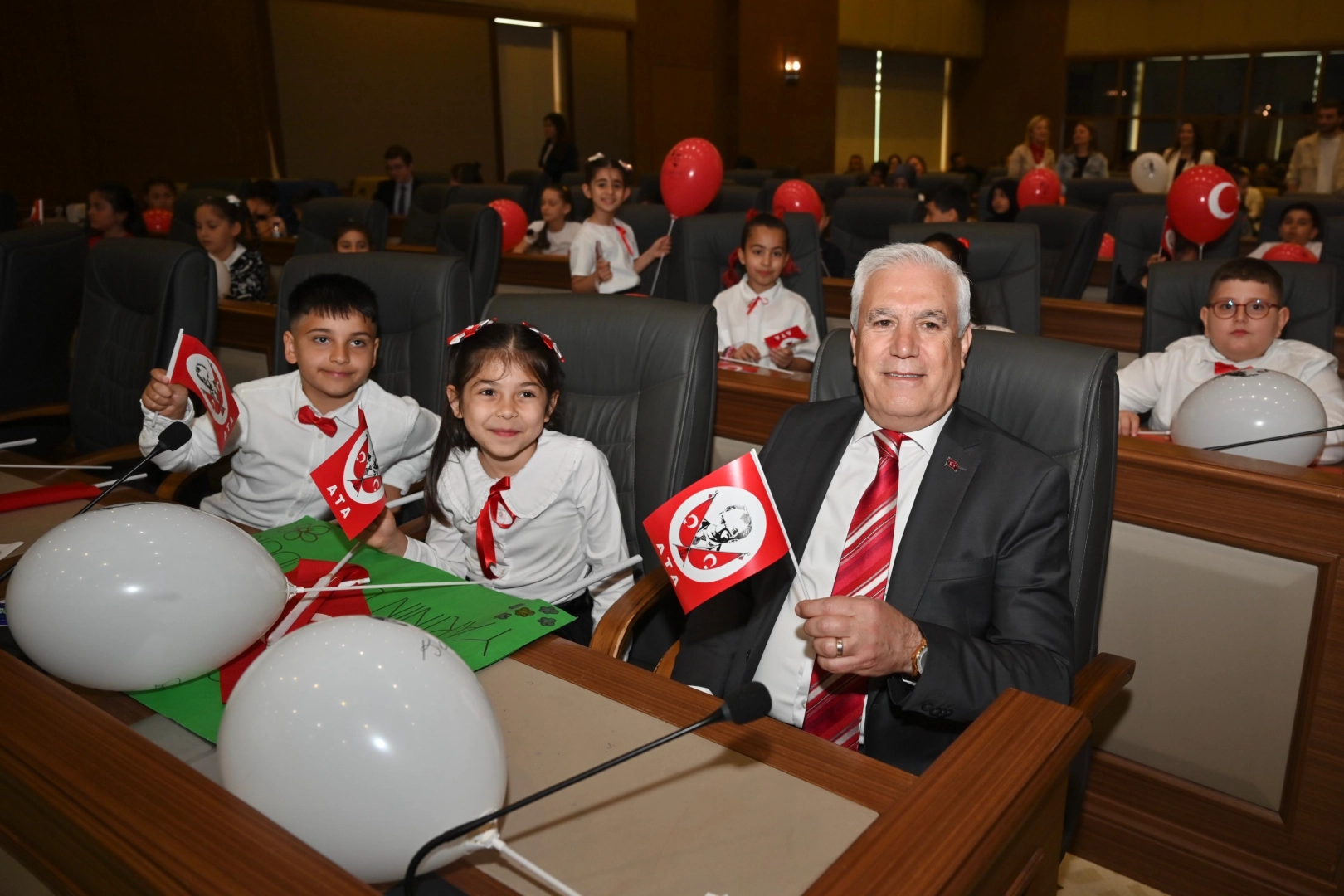 Başkan Bozbey, “Ulu Önder Mustafa Kemal Atatürk’ün Cumhuriyet’i emanet ettiği çocukları ve gençleri, geleceğimiz olarak görüyoruz. Kent yöneticileri olarak çocuklarımıza kulak vermeliyiz” dedi. 23 Nisan Ulusal Egemenlik ve Çocuk Bayramı ile TBMM’nin açılışının yıl dönümü kutlamaları kapsamında ‘Bursa Büyükşehir Belediye Meclisi Çocuk Oturumu’ Başkan Bozbey’in katılımıyla gerçekleşti. Bursa Büyükşehir Belediye Başkanı Mustafa Bozbey’in koltuğuna oturan Bursa Kent Konseyi Çocuk Meclisi Başkanı Yağız Vatansever ve Çocuk Meclisi yürütme kurulu üyesi İnci Bade Yiğit, çocuklar adına oturum başlangıç konuşmasını gerçekleştirdi. Ulusal Egemenlik ve Çocuk Bayramı etkinlikleri kapsamında 10 okuldan 64 öğrencinin katılımıyla 'Umutlu Yarınlar Çalıştayı' düzenlediğini hatırlatan Çocuk Meclisi Başkanı Yağız Vatansever, gün boyunca yapılan etkinlikte geleceğin Bursa'sını konuştuklarını söyledi. Hayal ettikleri ve olmasını istedikleri kente dair görüş ve düşüncelerini dile getiren çocukların çalıştay sonucunda ortaya çıkan öneri ve taleplerini Başkan Mustafa Bozbey ile paylaşan Yağız Vatansever, “Ulu Önder Gazi Mustafa Kemal Atatürk'ün biz çocuklara armağan ettiği 23 Nisan Ulusal Egemenlik ve Çocuk Bayramı'nda, geleceğe dair umutlarımızı ve hayallerimizi paylaşmak için bir aradayız. Yarının güçlü, adil ve mutlu şehirleri; bugünün düşünen, konuşan ve dinlenen çocuklarıyla kurulacak. Bursa'nın çocukları olarak, kentimizin geleceğine dair fikirlerimizi paylaşmak, bizlere verilen bu kıymetli söz hakkını en iyi şekilde kullanmak istiyoruz. Bu anlamlı günde bizleri dinlediğiniz ve sesimize değer verdiğiniz için teşekkür ederiz. Yaşasın 23 Nisan. Yaşasın Ulusal Egemenlik” dedi. Çalıştayda, ‘Hayalimizdeki Bursa nasıl bir yer? Orada neler var, neler yok?’ sorusuna cevap arayan çocuklar, “Yeşil, huzurlu, kavgasız, eğlenceli ve kargaşadan uzak, güvenli bir Bursa istiyoruz. Arabaların ve gürültünün az olduğu, çöp atılmayan, sistemli ve düzenli bir Bursa istiyoruz. Parklarda kitap okuma köşeleri, kaykay ve paten alanları ve bisiklet yolları ile oyun alanlarının daha fazla yer aldığı bir Bursa istiyoruz. Okullarda daha fazla geri dönüşüm kutularının yer aldığı bir Bursa istiyoruz. Bursaspor'un Süper Lig'e ışınlanarak şampiyon olduğu bir Bursa istiyoruz. Her mahallede çocukların özgürce oynayabileceği spor sahalarının yer aldığı bir Bursa istiyoruz. Caddelerde ve sokaklarda bisiklet yollarının bulunduğu bir Bursa istiyoruz. Denizi masmavi ve turkuaz renklerde bir Bursa istiyoruz. Her hafta sonu parklarda dev ekranlarda çizgi film izlenilen bir Bursa istiyoruz. Bozulan oyuncakların onarılabildiği atölyelerin kurulduğu bir Bursa istiyoruz. Ağaçların kesilmediği, eğitimli hayvanların olduğu bir Bursa istiyoruz” yanıtlarını verdi. Bursa’nın 2050 yılında nasıl alanlara sahip olması gerektiği sorusuna da çalıştayda cevap arayan çocukların geleceğe dair düşünceleri de tek tek dile getirildi. “Onların söylemleri, talepleri çok önemli” Bursa Büyükşehir Belediye Başkanı Mustafa Bozbey, Bursa Kent Konseyi çocuk Meclisi üyelerini Büyükşehir Belediye Meclisi’nde ağırladıklarını söyledi. Çocukların hayal ettikleri ve yarının Bursa’sının nasıl olması gerektiğini ortaya koyduğunu belirten Başkan Mustafa Bozbey, “Her bir madde bizim için önemliydi. Bugün çocukların günü. Onların söylemleri, onların talepleri çok önemli. Kent yöneticileri olarak çocuklarımıza kulak vermeliyiz. Onların önerilerini dinlemeliyiz. Onların söylediklerine dikkat etmeliyiz. Ulu Önder Mustafa Kemal Atatürk’ün Cumhuriyet’i emanet ettiği çocukları ve gençleri, geleceğimiz olarak görüyoruz. Ulu Önder Mustafa Kemal Atatürk’ün dünyada tek olan ve çocuklara armağan ettiği bayramı kutluyoruz. Aynı zamanda Türkiye Büyük Millet Meclisi’nin açılış yıl dönümünü kutluyoruz. Ulusal Egemenlik ve Çocuk Bayramımızı kutlamak, yarının yöneticileri olan çocuklarımız için son derece önemli. Ulu Önder Mustafa Kemal Atatürk’ü gençlerimize ve çocuklarımıza değer verdiği için bir kez daha minnetle anıyorum. 23 Nisan Ulusal Egemenlik ve Çocuk Bayramımız kutlu olsun” dedi. Konuşmaların ardından Yunuseli Şehit Gürcan Ulucan İlkokulu öğrencileri tarafından ‘Sen ol çocuğum’ ve ‘Bugün 23 nisan’ isimli şiirler ile ‘Ay yıldızlı al bayrağım’ ve ‘Atatürk çocukları’ isimli şarkılar seslendirildi.