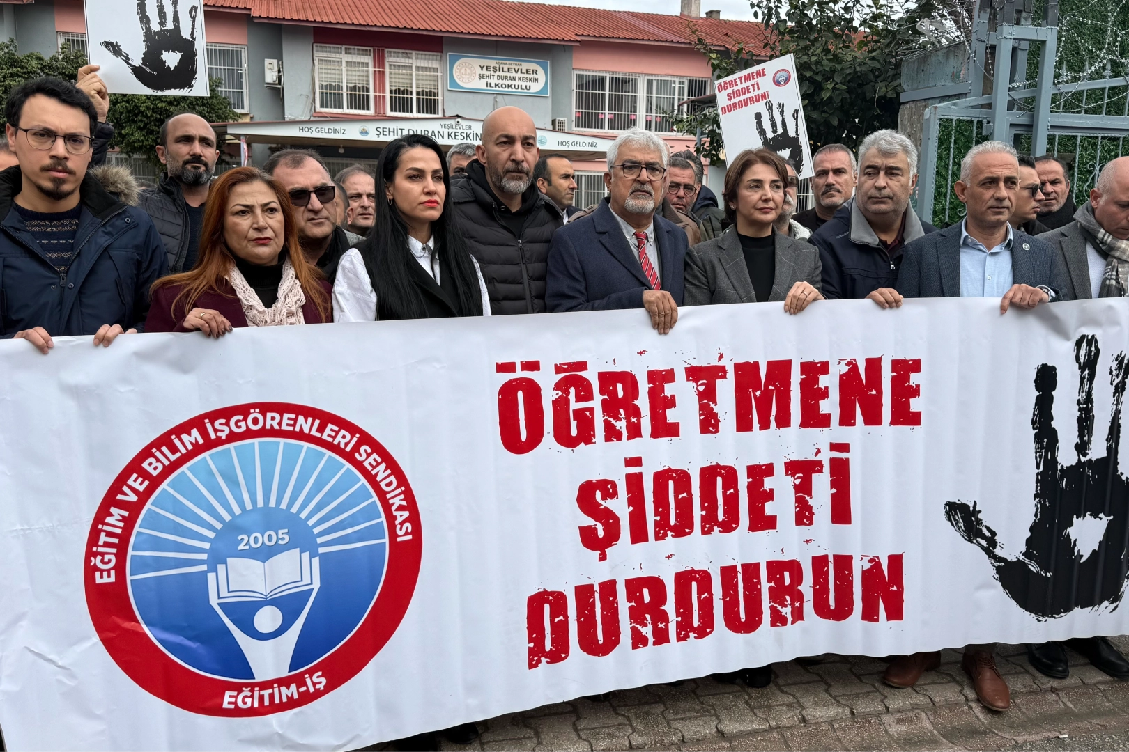 Basın açıklamasını okuyan Eğitim-İş Adana 1 Nolu Şube Başkanı Hatice Hazar, 1 hafta önce cezaevinden tahliye edilen bir veli tarafından öğretmenin okulun önünde, tam da bu alanda önce darp edildiğini, ardından silahlı saldırıya uğradığını söyledi. Hazar, "Silah ateşlenmiş, öğretmenimizin hayatı açıkça hedef alınmıştır. Son anda gösterdiği refleks sayesinde bir cinayet engellenmiştir. Yani öğretmenimiz bugün tesadüfen, şans eseri hayattadır. Bugün öğretmenimizin başına gelen bu olayın, yarın bizim başımıza gelmeyeceğinin hiçbir garantisi yoktur. Bu nedenle bugün tepkisiz kalırsak, bu şiddet olayları artarak devam edecek ve biz eğitim emekçileri olarak canımızdan endişe ederek okullara gitmek zorunda kalacağız. Bizler, bu sistemde var olmak istemiyoruz. Buradan açıkça söylüyoruz; bu bir saldırı değildir, bu bir cinayete teşebbüstür. Süreci yakından takip etmekteyiz" dedi. "Cezaevinden çıkan veli tarafından saldırıya uğradım" Basın açıklamasının ardından konuşan öğretmen Aziz Gülen ise eylül ayında yaşanan bir konunun yeniden alevlendirildiğini anlatarak, "Cezaevinden çıkan bir veli tarafından saldırıya uğradım. Sağlam hiçbir gerekçe yokken, okuldan karşıya geçtiğim sırada darp edildim, ardından silah sıkılarak can güvenliğim tehlikeye atıldı. Bir günlük öğrencimin velisi, cezaevinden 1 hafta önce tahliye olmuştu. Eylül ayında yaşanan bir konuyu yeniden alevlendirdi. Kendileriyle herhangi bir sorun yaşamamıştık" diye konuştu.