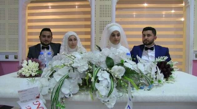 Dünür Süleyman Navdar ve Veli Bilgili ise yaptıkları açıklamada “Gençler tanışmışlar biz de kararlarına destek olduk. Bir salonda çifte düğün yapmak için her ne kadar zorlansak da bir ilke imza atmanın mutluluğunu yaşıyoruz” dediler.