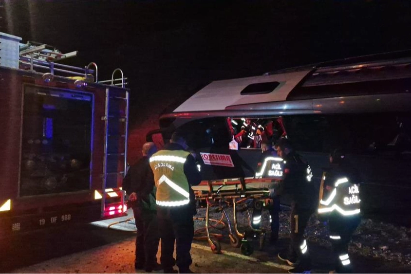 Kaza, Alaca ilçesi Çorum-Alaca Karayolu'nda meydana geldi. Edinilen bilgiye göre, Adana’dan Samsun’a seyir halinde olan turistik tur otobüsü, sürücüsünün direksiyon hakimiyetini kaybetmesi sonucunda şarampole girerek yan yattı. İlk belirlemelere göre 15 kişi yaralandı. İhbar üzerine bölgeye çok sayıda jandarma, sağlık ve Alaca Belediyesi itfaiye ekibi sevk edildi. Olay yerine gelen itfaiye ekipleri tarafından araçtaki yaralıları çıkartmak için çalışma başlatıldı. Otobüsün camından çıkartılan yaralılar, ambulanslarla çevre hastanelere kaldırılıyor.