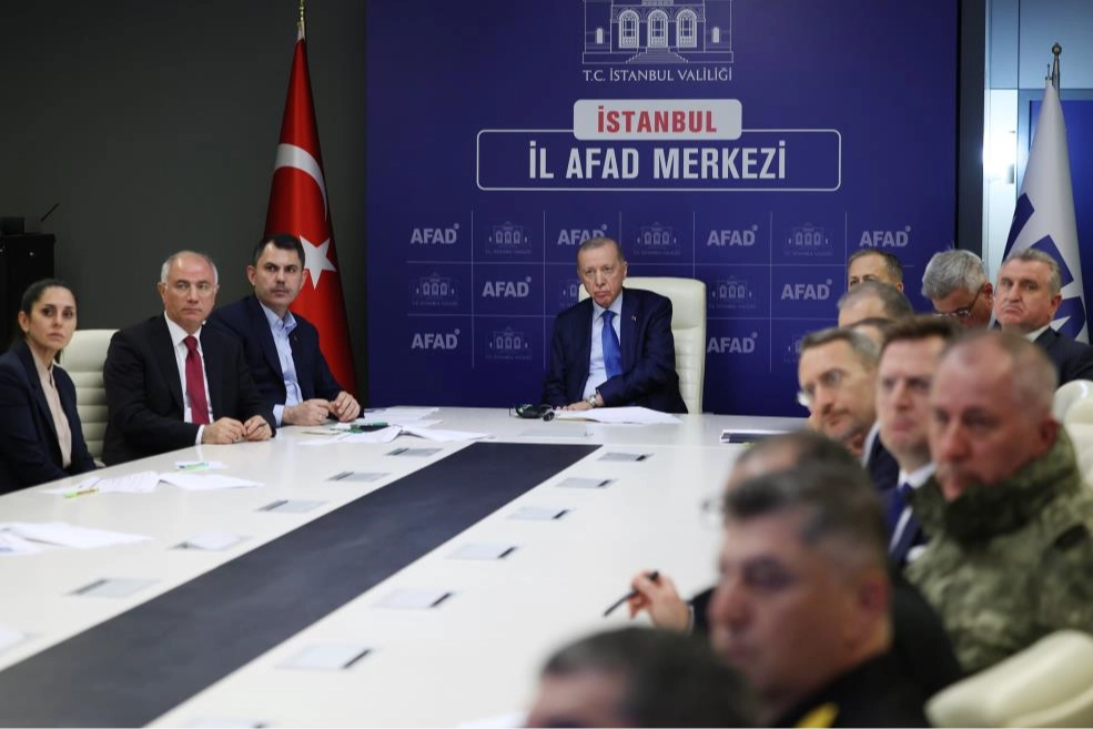 İstanbul İl Afet ve Acil Durum Müdürlüğünde bulunan kriz merkezini ziyaret eden Cumhurbaşkanı Erdoğan'a, Çevre, Şehircilik ve İklim Değişikliği Bakanı Murat Kurum, Gençlik ve Spor Bakanı Osman Aşkın Bak, İçişleri Bakanı Ali Yerlikaya, Sağlık Bakanı Kemal Memişoğlu, İstanbul Valisi Davut Gül ve yetkililer tarafından detaylı bilgi verildi.