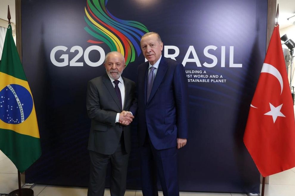 Cumhurbaşkanı Erdoğan, G20 Liderler Zirvesi için gittiği Brezilya’daki temasları kapsamında Brezilya Devlet Başkanı Lula Da Silva ile gerçekleştirdiği görüşmede Türkiye ile Brezilya arasındaki ilişkilerin gelişiminde üst düzey diyaloğun önemli olduğunu, iki ülke arasındaki stratejik ortaklığın geliştirilmesi için çalışmaya devam edeceklerini ifade etti. Cumhurbaşkanı Erdoğan, Brezilya’nın İsrail saldırganlığı karşısındaki duruşunun takdire şayan olduğunu, Türkiye’nin İsrail’e silah ve mühimmat satışının engellenmesi için Birleşmiş Milletler nezdinde girişim başlattığını, Filistin’de kalıcı ateşkesin tesisi, insani yardımların kesintisiz şekilde bölgeye ulaştırılması ve iki devlet temelinde adil bir çözüm için Türkiye’nin elinden geleni yapmaya devam edeceğini belirtti.