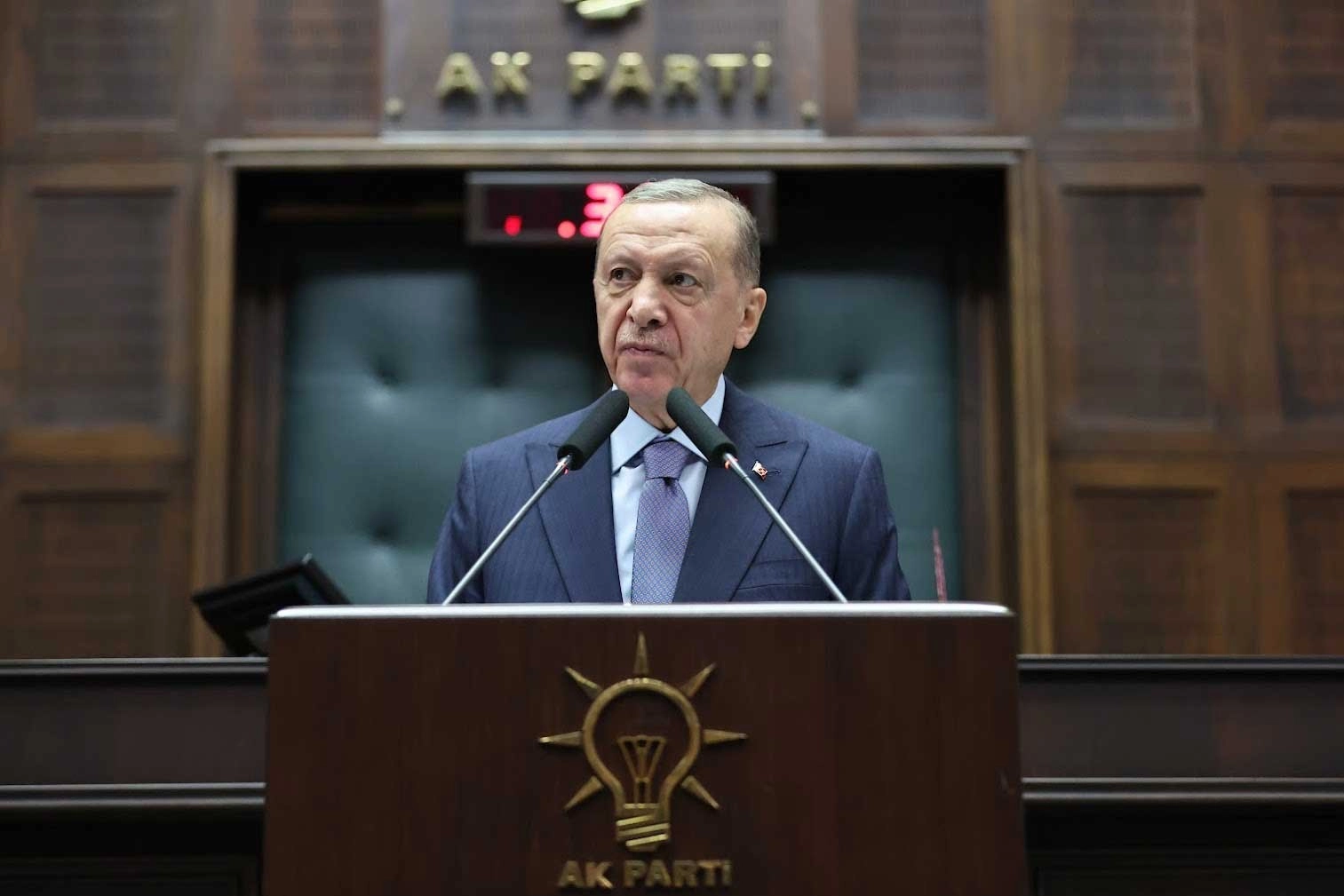 “Son 21 yılda çetin mücadeleler sonucu gerilettiğimiz bürokratik vesayetin tekrar nüksetmesine fırsat vermeyiz, vermeyeceğiz. Son dönemde gündeme gelen her hadiseyi tüm boyutlarıyla en ince detayına kadar takip ediyoruz. Kanunun dışına çıkan, hatası, kastı veya marazı olan kim varsa hukuk zemininde hesabını mutlaka soruyoruz. Ülkeye ve millete karşı vazifesini yapmamanın hiçbir bahanesi olmaz. Bizim için her bir saniye milletimizin emanetidir, o her saniyeyi milletimiz için sarf etmek boynumuzun borcudur.” Son 22 yılda AK Parti'yle ilgili de, hükümetleriyle ilgili de karamsar, kötümser senaryolar yazanlar olduğunu aktaran Erdoğan, “Bize süre biçenler oldu, bize gazete manşetlerinden ömür biçenler oldu. Bu iş bitti deyip yolunu değiştirenler oldu. Bu davaya ihanet edenler oldu. Korkanlar, ürkenler, hırslarına yenilenler oldu. Onlar şimdi yoklar, esameleri okunmuyor, unutulup gittiler. Ama Allah'a hamdolsun biz buradayız, dimdik, sapasağlam ayaktayız. Dava burada, inşallah yarın da burada olacak. Mevla ömür, milletimiz de yetki verdikçe burada olmaya devam edeceğiz” dedi.