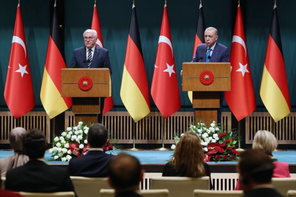 Cumhurbaşkanı Recep Tayyip Erdoğan, Almanya Cumhurbaşkanı Frank-Walter Steinmeier ile Ortak Basın Toplantısı'nda konuştu. Almanya Cumhurbaşkanı Steinmeier'i yeniden ağırlamaktan büyük bir memnuniyet duyduğunu belirten Cumhurbaşkanı Erdoğan, "Malumunuz geçtiğimiz yıl Türkiye-Almanya arasındaki dostluk anlaşmasının 100. yıl dönümüydü. Son dönemde gerçekleşen üst düzeyli ziyaretler ve uluslararası platformlardaki görüşmelerimiz, iki ülke arasındaki yakın diyaloğun en açık tezahürüdür. Güçlü siyasi, ekonomik, beşeri ve kültürel bağlarımız bizlere ilişkilerimizi daha da geliştirme fırsatı veriyor" dedi.