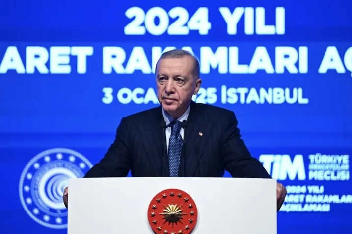 Dış ticaret rakamlarının artmasında hem hükümetin hem de özel sektörün katkılarının bulunduğunu belirten Cumhurbaşkanı Erdoğan, "Her yıl artan dış ticaret rakamlarının bir tarafında hükümetimiz varsa elbette diğer tarafında özel sektörümüz bulunuyor. Öncelikle fedakarca çalışarak Türk ürünlerini dünyanın dört bir yanına ulaştıran ihracatçılarımızı ve iş dünyamızın elçilerini tebrik ediyorum. Dış ticaret rakamlarının objektif değerlendirmesini yaparken şu noktanın gözden ırak tutulmaması gerektiği kanaatindeyim. Türkiye olarak özellikle bölgesel gelişmeler bağlamında belirsizliklerle dolu, son derece sancılı ve sarsıntılı bir yıl geçirdik. Karadeniz'den komşularımız olan Rusya, Ukrayna arasındaki savaş kimi zaman çok tehlikeli boyutlara vararak 2024 yılında da devam etti. Koronavirüs sürecinde geçici denilerek devreye alınan korumacı tedbirler maalesef geçen yılda küresel ticareti olumsuz etkilemeyi sürdürdü. Tüketim, üretim ve enflasyon gibi temel ekonomik göstergelerde salgınla beraber başlayan bozulmanın üstesinden henüz gelinemedi. Jeopolitik gerilimler, siyasi çalkantılar ve henüz tam istenilen seviyelere gelinemeyen enflasyonla mücadele dünyada geçen yıla damgasını vurdu. 2025 senesinde bizleri nispeten daha iyi bir yıl bekliyor. Ancak 2025 yılında küresel iktisadi faaliyetin toparlanmakla birlikte salgın öncesi ortalamalarının altında seyredeceği anlaşılıyor" diye konuştu.