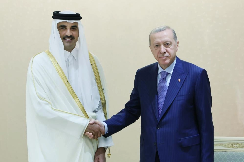 Cumhurbaşkanı Recep Tayyip Erdoğan, Şanghay İşbirliği Örgütü 24'üncü Devlet Başkanları Zirvesi'ne katılmak üzere geldiği Kazakistan'da temaslarını sürdürüyor. Erdoğan, başkent Astana'daki ikili temasları çerçevesinde Hamad Al Thani ile bir araya geldi. Erdoğan zirve çerçevesinde dün Rusya Devlet Başkanı Vladimir Putin, Azerbaycan Cumhurbaşkanı İlham Aliyev ve Pakistan Başbakanı Şahbaz Şerif ile görüşmüştü. Erdoğan bu erken saatlerde ise Moğolistan Cumhurbaşkanı Ukhnaagiin Khurelsukh ile bir araya gelmişti.