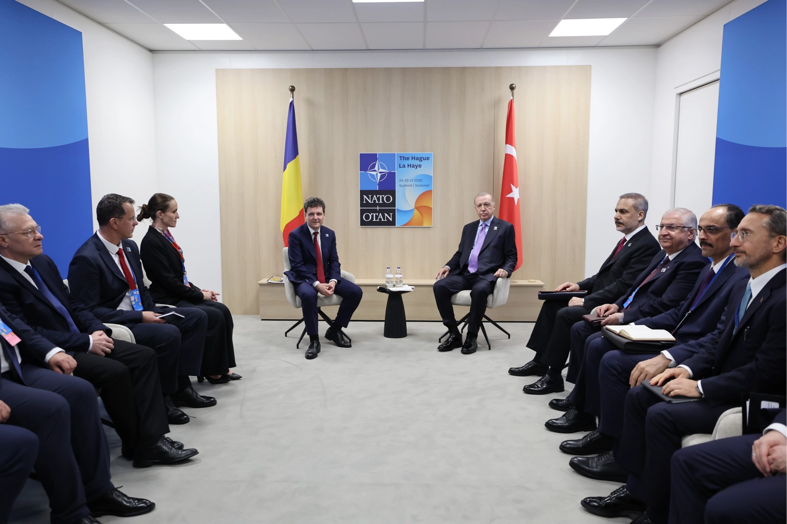 Cumhurbaşkanı Recep Tayyip Erdoğan, Hollanda'nın Lahey kentinde düzenlenen NATO Zirvesi kapsamında ikili temaslarını sürdürüyor. Cumhurbaşkanı Erdoğan, zirve marjında Romanya Cumhurbaşkanı Nicusor Dan ile görüşme gerçekleştirdi. Görüşmede Cumhurbaşkanı Erdoğan'a Dışişleri Bakanı Hakan Fidan, Milli Savunma Bakanı Yaşar Güler, Milli İstihbarat Teşkilatı (MİT) Başkanı İbrahim Kalın, Cumhurbaşkanlığı İletişim Başkanı Fahrettin Altun, Cumhurbaşkanı Dış Politika ve Güvenlik Başdanışmanı Akif Çağatay Kılıç ve AK Parti Genel Başkan Yardımcısı Halit Yerebakan eşlik etti.