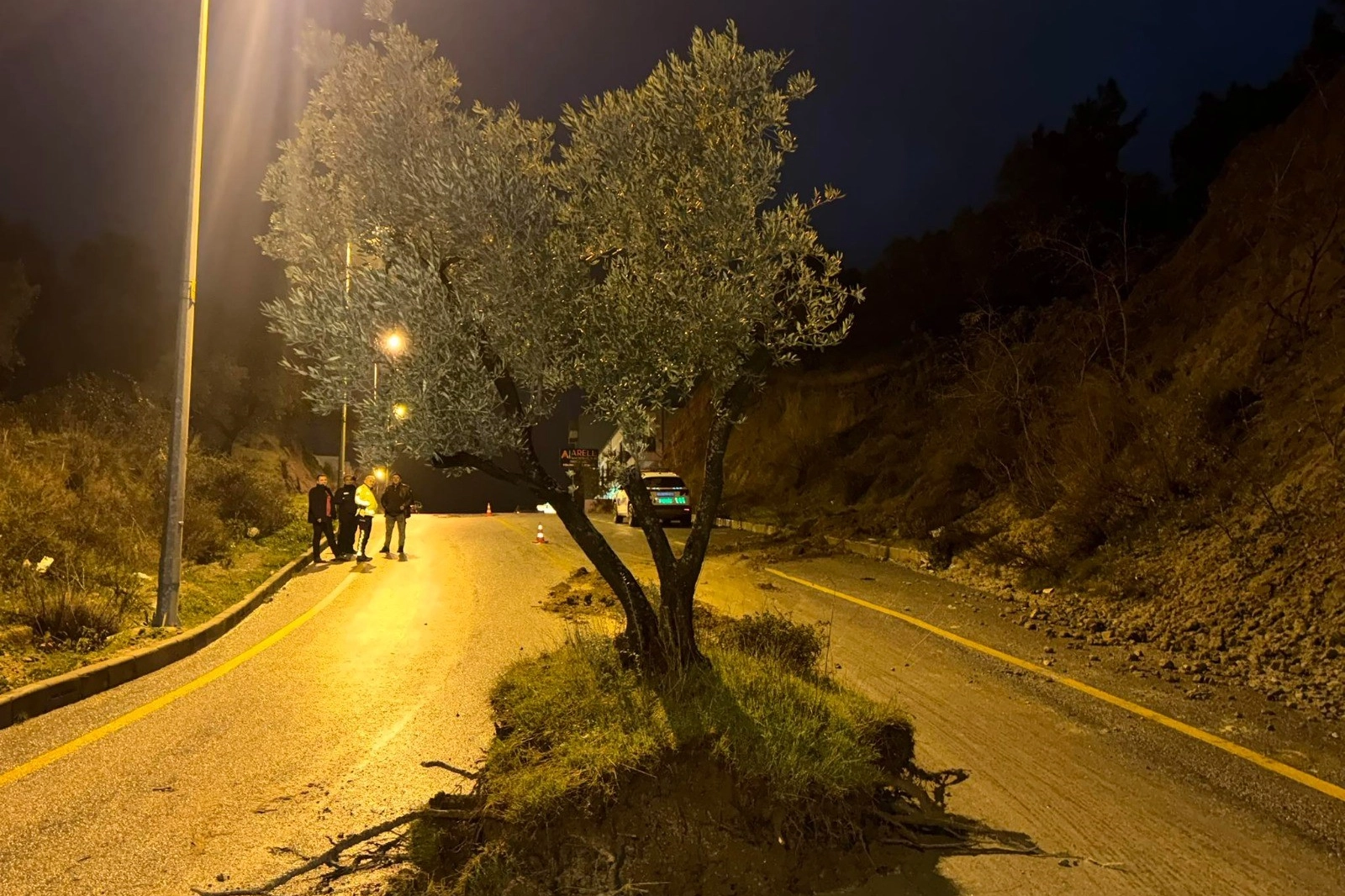 Meteoroloji’nin sağanak yağış ve fırtına uyarısının ardından Söke ilçesinde sağanak yağış dün gece saatlerine kadar etkili oldu. Sağanak yağışla birlikte yollar göle dönerken, köküyle birlikte yol ortasına sürüklenen zeytin ağacını görenler gözlerine inanamadı. Sel sularının dağdan kopardığı ve adeta ayaklanan zeytin ağacı sürüklenerek karayolunun ortasında durdu. İlginç olay kameralara yansırken, durumu gören araç sürücülerinin ihbarı ile trafik ekipleri yolda güvenlik önlemi aldı. Bölgeye gelen belediye ekipleri ise zeytin ağacını karayolunun ortasından kaldırıp yeniden dikilmek üzere sera alanına götürürken, karayolunda ulaşım normale döndü.