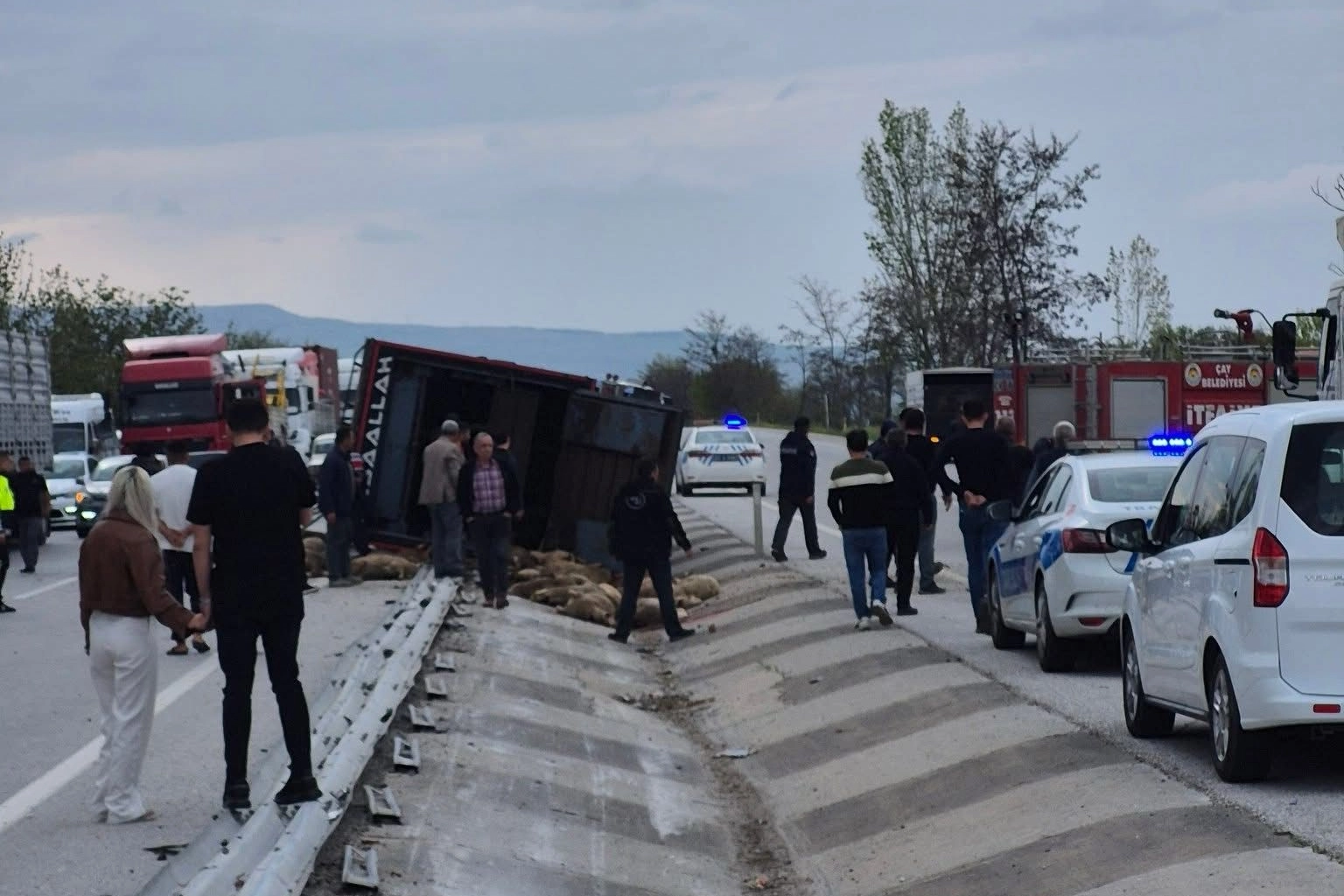 Kaza, Çay ilçesi Pazaraağaç beldesi yakınlarında meydana geldi. Edinilen bilgilere göre, H.M.A., idaresindeki 42 L 5525 plakalı kamyon sürücüsünün henüz belirlenemeyen bir sebepten ötürü direksiyon hakimiyetini kaybetmesi sonucu kontrolden çıktı. Savrulan araç ardından yol ortasındaki refüje devrildi. Olayda kamyonun kasasında taşıdığı 240 hayvan etrafa dağıldı. Olayda 53 koyun telef olurken, yaralı olan 17 koyun ise telef olmadan çevredekiler tarafından kesildi. Diğer koyunlar ise belediyeye ait hayvan pazarına götürülerek koruma altına alındı. Olayda yaralanan kamyon sürücüsü ise bölgeye gelen ambulansla hastaneye kaldırıldı. Kaza sonrası jandarma tarafından başlatılan inceleme devam ediyor.
