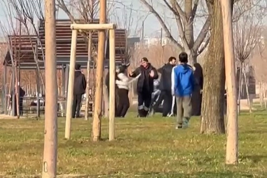 Olay, dün Yıldırım ilçesi Anadolu Mahallesi'ndeki Gökdere Millet Bahçesi'nde meydana geldi. Güneşli havayı fırsat bilen vatandaşlar, parklara akın etti. Mangalcıların yanı sıra cağ döneri yapanlar da parklardaki yerini aldı. Öğle saatlerinde mangal dumanı sebebiyle çıktığı iddia edilen iki ayrı kadın grubunun tartışması bir anda kavgaya dönüştü. Çevredekiler müdahale etse de kadınları ayırmak bir türlü mümkün olmadı. Kadınların birbirine döner bıçağı çektiği kavgayı ayırmaya gelen parkın güvenlik görevlilerinden Mücahit Tilci (46) bacağına aldığı döner bıçağı darbesiyle yaralandı. İhbar üzerine olay yerine gelen 112 Acil Servis ekipleri, Tilci'yi ambulansla Yüksek İhtisas Eğitim ve Araştırma Hastanesine kaldırdı. Yaralının hayati tehlikesi bulunmazken, polis ekipleri kaçan şüpheliyi yakalamak için çalışma başlattı.