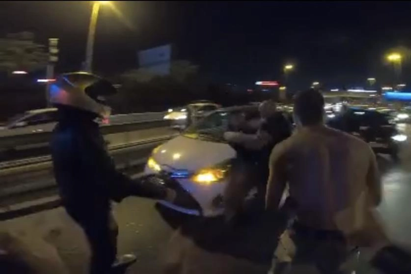 Olay, dün saat 21.00 sıralarında E-5 Karayolu Kağıthane Okmeydanı mevkisi Ankara istikametinde meydana geldi. Edinilen bilgiye göre, Kadıköy istikametine 34 KS 3418 plakalı hafif ticari araçla seyreden Ferdi Ö. ve yanındaki Mahmut Ö., Deniz Ö. ile 34 MG 9314 plakalı otomobil sürücüsü Mahmoud A. ile Kamal Eddin S. arasında trafikte yol verme yüzünden tartışma çıktı. Haliç Köprüsü'nü geçtikten sonra tartışmanın büyümesi üzerine Okmeydanı yol ayrıma gelen iki sürücü, trafiğin yavaşladığı anlarda da tartışmaya devam etti. Sürücülerin yanlarındaki yolcuların da tartışmaya dahil olması üzerine kavga çıktı. Yumruk ve tekmeyle camı kırıp sürücüyü darbettiler Hafif ticari aracın sürücüsü ve 2 kişi, otomobil sürücüsünün yanına gelerek aracı tekmelemeye başladı. Hafif ticari araç sürücüsü ve yanındakiler otomobilin camlarını da yumrukladı. Otomobil sürücüsü kaçmaya çalışsa da fazla uzaklaşamadı. Trafiğin yavaşlamasını fırsat bilen şüpheliler, bir süre sonra otomobilin camını kırıp sürücüye yumruk ve tekme atmaya başladı. Araç sürücüsü ise, bir yandan kendini savunmaya çalıştı bir yandan da yaşananları cep telefonuyla saniye saniye görüntüledi. Birbirlerinden şikayetçi olmadılar Kavganın ardından araçlarından inen taraflar bir süre daha tartışmaya devam etti. Tartışma yeniden küfürlü kavgaya dönüştü. Birbirlerine tekme ve yumruklarla saldıran tarafların kavga ettiği anlar yoldan geçen bir motosiklet sürücüsünün kask kamerasına yansıdı. İhbar üzerine olay yerine polis ve sağlık ekipleri sevk edildi. Saldırıya uğrayan 2 kişi hafif şekilde yaralanırken, saldırıya uğrayan sürücünün otomobilinde hasar meydana geldi. Öte yandan, olayın ardından polis ekipleri tarafları gözaltına alarak emniyete götürdü. Emniyette ifadeleri alınan şahıslar ilk olarak birbirlerinden şikayetçi oldu. Ardından da şikayetlerinden vazgeçmeleri üzerine taraflar serbest bırakıldı.