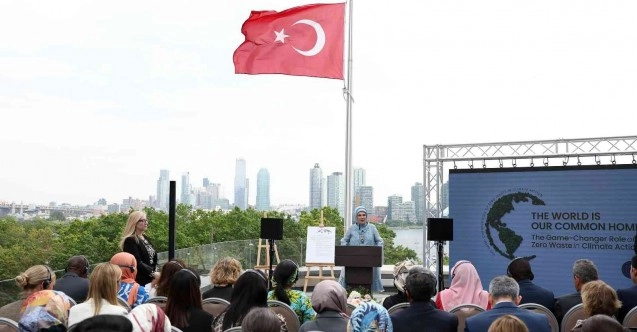 Cumhurbaşkanı Recep Tayyip Erdoğan’ın eşi Emine Erdoğan, ABD’nin New York kentindeki Türkevi binasında, "Dünya Ortak Evimiz: İklim Kriziyle Mücadelede Sıfır Atığın Önemi" programında konuştu. Emine Erdoğan, "Bugüne kadar, sıfır atık konusundaki tecrübelerimizi paylaşmamız noktasında uluslararası birçok talep aldık, bu konudaki başarımız uluslararası toplumda büyük ilgi görüyor. Bu deneyimlerimizi isteyen her ülkeyle paylaşmaya hazırız ve Sıfır Atık Projesini küresel bir harekete dönüştürmek arzusundayız" dedi. Emine Erdoğan, Birleşmiş Milletler‘de (BM) görevli birçok üst düzey yöneticinin bulunduğu etkinlikte, katılımcıları sıfır atık konusunda farkındalığın artırılması için destek vermeye çağırarak, "Bu buluşmanın, müreffeh bir geleceğe açılacak kapıların vesilesi olmasını diliyorum" ifadelerini kullandı.
