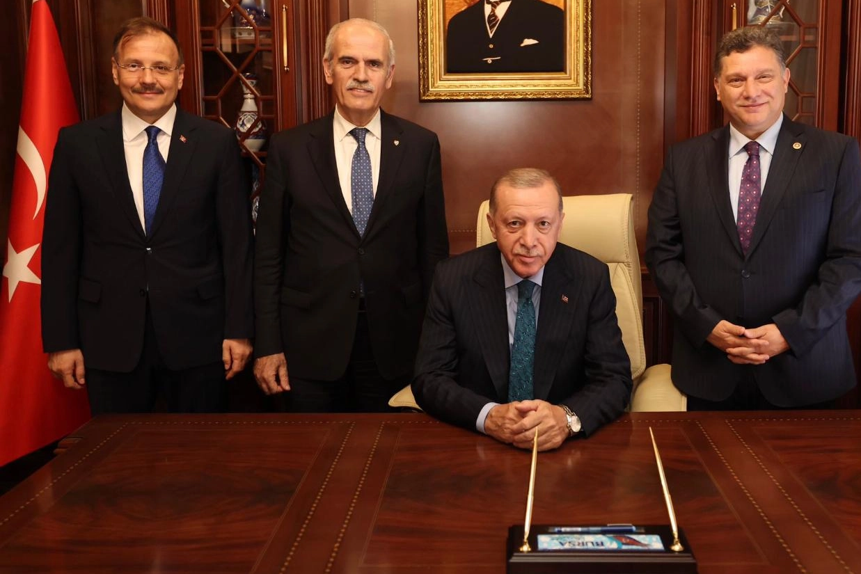 Miting öncesi Bursa Valiliği'ni ziyaret eden Cumhurbaşkanı Recep Tayyip Erdoğan, burada Ak Parti Yerel Yönetimler Genel Başkan Yardımcısı Recep Altepe ve eski Bursa Milletvekili Hakan Çavuşoğlu ile bir araya geldi.