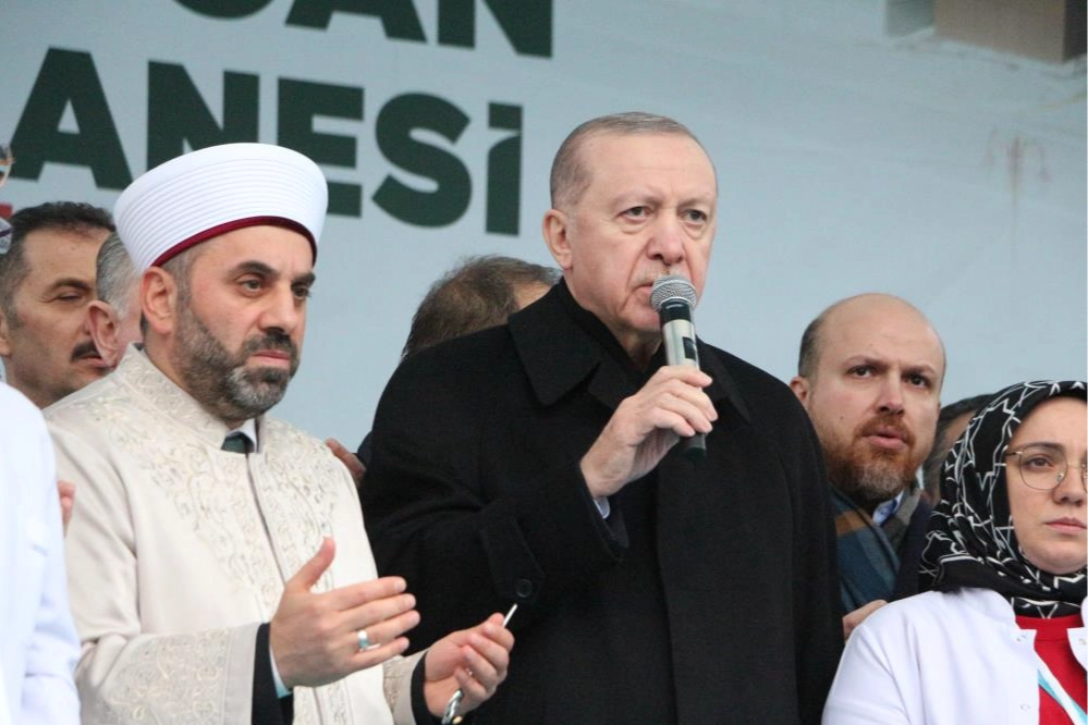 "Biz millete ve memleketimize hizmet için varız" diyen Erdoğan, "Biz bu yola kendimizi adadık derken asla hamaset yapmıyoruz. Başkaları kendilerini çıkarlarına ve ikballerine adamış olabilir. Başkalarının önceliği kariyerleri, siyasi hırsları, koltukları olabilir ama bizim önceliğimiz insandır, insanımızın sağlığıdır. Bizim gayemiz insanımızın ekmeğini ve umutlarını büyütmektir. Her işin başı sağlıktır diyerek 2002'den beri ülkemizin sağlık altyapısını güçlendirmek için gece gündüz çalışıyoruz. Sağlık sistemimizi çağın gereklerine, ülkemizin gerçeklerine ve vatandaşlarımızın beklentilerine cevap verir hale getirdik. Böylece bir dönem ülkemizin en zayıf halkası olarak görülen sağlık hizmetlerini dünyada örnek alınan bir seviyeye yükselttik. Bugün dünyanın çeşitli ülkelerinden uzmanlar geliyor. Başta şehir hastanelerimiz olmak üzere bizim sağlık sistemimizi inceliyor. Türkiye sağlık noktasında kendi vatandaşları ile birlikte her yıl yüzbinlerce yabancıya sağlık hizmeti veriyor. Bakın Covid-19 salgını başladığında neler yaşandığını hep birlikte gördük. Güçlü sağlık altyapımız sayesinde korona virüs salgınını dünyada en rahat ve en az kayıpla atlatan ülkelerden biri olduk. Bize gelişmiş diye örnek gösterilen ülkelerde yaşanan sahnelerin hiçbiri Türkiye'de yaşanmadı. Avrupa'dan Amerika'sına insanların çok ciddi paralar ödemek zorunda kaldığı hizmetleri biz vatandaşımıza tamamen ücretsiz sunduk. 53 binden fazla canımızı toprağa verdiğimiz 6 Şubat depremlerinden aynı şekilde alnımızın akıyla çıktık. Dünyada bir başka ülkenin altından kolayca kalkamayacağı ağır bir yükü hamdolsun omuzlamayı başardık" ifadelerini kullandı.