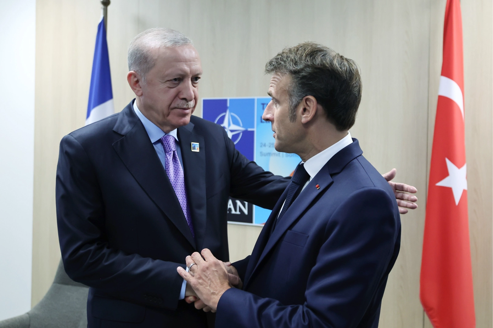 Cumhurbaşkanı Recep Tayyip Erdoğan, Hollanda'nın Lahey kentinde düzenlenen NATO Zirvesi kapsamında ikili temaslarını sürdürüyor. Cumhurbaşkanı Erdoğan, zirve marjında Fransa Cumhurbaşkanı Emmanuel Macron ile görüşme gerçekleştirdi. Görüşmede Türkiye ile Fransa ikili ilişkileri, bölgesel ve küresel konular ele alındı. Cumhurbaşkanı Erdoğan görüşmede, Türkiye ile Fransa ikili ilişkilerini daha ileriye taşımak için çalışmaya devam edeceklerini belirtti. Erdoğan, İsrail ve İran arasında sağlanan ateşkesin memnuniyetle karşılandığını, fiili durumun bir an önce kalıcı sükûnete dönüşmesi gerektiğini, Gazze’de ise insani krizin artarak sürdüğünü, orada da bir an önce kalıcı ateşkese ulaşılmasının ehemmiyetini ifade etti. Erdoğan, Avrupa’nın yeni güvenlik ve savunma mimarisinde Avrupa Birliği üyesi olmayan müttefiklerin de dahil edilmesinin fayda sağlayacağını, Türkiye-Avrupa Birliği ilişkilerinin uzun vadeli ve stratejik bakış açısıyla ele alınmasının yararlı olacağını vurguladı. Suriye’nin bölgesel çatışmaların dışında kalma konusunda dikkatli hareket ettiğini kaydeden Erdoğan, İsrail’in kendi güvenliğini sağlamasının yolunun ise komşularının istikrarından geçtiğini anlamasının önemli olduğunu ifade etti.