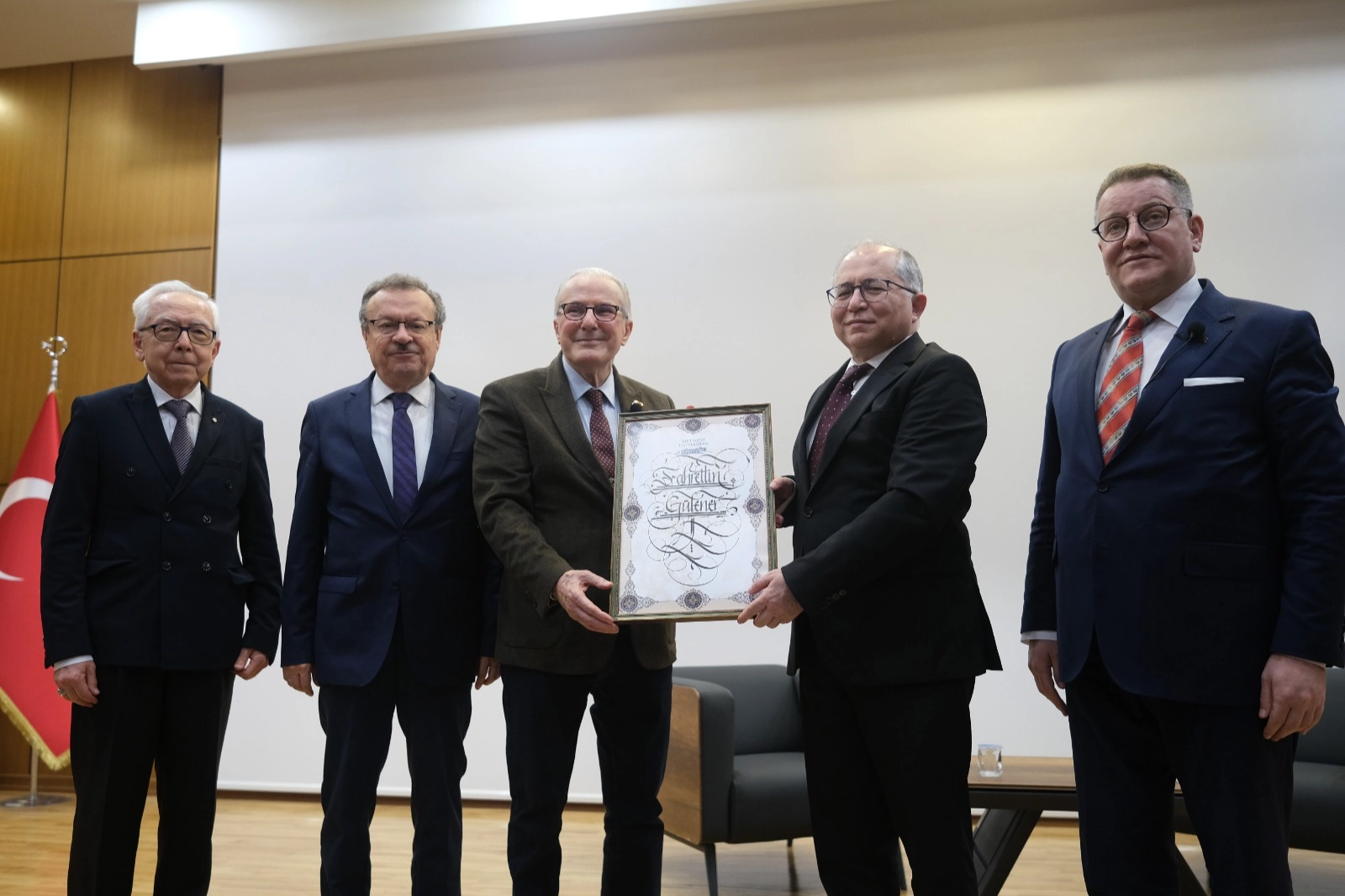 Öğrencilerin sorularını da samimiyetle yanıtlayan Gülener’e etkinliğin sonunda, Rektör Prof. Dr. Emin Karip, Danışma Kurulu Başkanı Prof. Dr. A. Saim Kılavuz ve Rektör Yardımcısı Prof. Dr. Nimetullah Burnak tarafından günün anısına isminin yazılı olduğu bir tablo hediye edildi.