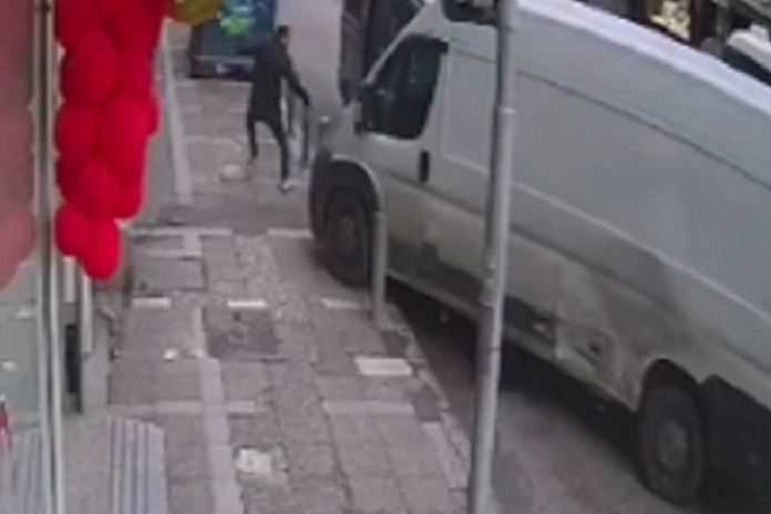 Olay, bugün saat 11.00 sıralarında Buca ilçesi Menderes Caddesi Efeler Mahallesi'nde meydana geldi. Edinilen bilgiye göre, seyir halindeki bir minibüsün iddiaya göre freni patladı. Kontrolden çıkan ve hızla ilerleyen minibüs, önce yolun karşısına geçerek bir dolmuşa, ardından kaldırımda yürüyen bir vatandaşa çarptı. Kontrolsüzce ilerleyen araç, bir iş yerinin duvarına çarparak ancak durabildi. Kaçmaya çalıştı ama kurtulamadı Kaza anı çevredeki bir iş yerinin güvenlik kamerası tarafından anbean kaydedildi. Görüntüde; minibüsün hızla üzerine doğru geldiğini fark eden yayanın panikle kaçmaya çalıştığı ancak aracın çarpmasından kurtulamadığı görülüyor. Çarpmanın şiddetiyle savrulan adam ve minibüs sürücüsü, çevredeki vatandaşların ihbarı üzerine olay yerine gelen sağlık ekiplerince ilk müdahaleleri yapılarak ambulansla hastaneye kaldırıldı. Hastaneye sevk edilen yaralıların hayati tehlikelerinin bulunmadığı öğrenildi. Kaza sonrası olay yerine gelen polis ekipleri, caddede güvenlik önlemleri alarak incelemelerde bulundu. Kazayla ilgili başlatılan soruşturma devam ediyor.