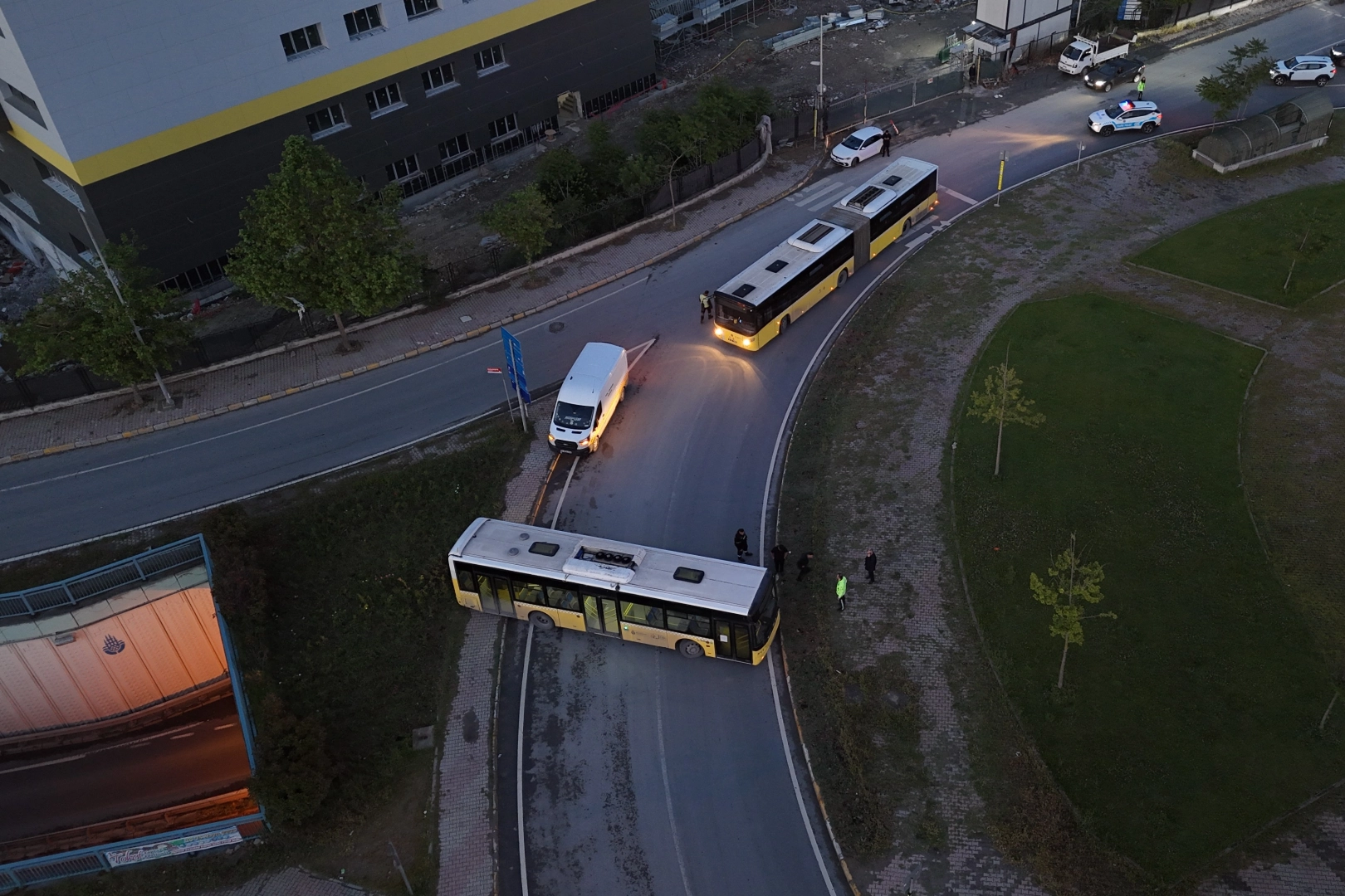 Kaza, dün akşam Avcılar Üniversite Mahallesi Üniversite Caddesi üzerinde meydana geldi. Edinilen bilgiye göre, içerisinde yolcu bulunan 34 HO 1900 plakalı İETT halk otobüsünün iddiaya göre freni boşaldı. Sürücüsünün direksiyon hakimiyetini kaybettiği otobüs, geri geri kayarak aynı yönden gelen 34 TP 7806 plakalı başka bir İETT otobüsüne çarparak durabildi. Kaza sonrası panik yaşayan yolcular, kısa sürede otobüsten tahliye edildi. İhbar üzerine olay yerine polis ve sağlık ekipleri sevk edildi. Yol trafiğe kapatıldı Olay yerine gelen polis ekipleri caddeyi her iki yönde araç trafiğine kapatarak önlem aldı. Kazada can kaybı ve yaralanma yaşanmazken, yapılan çalışmaların ardından otobüsün yoldan kaldırılmasıyla trafik normale döndü. Öte yandan kaza nedeniyle kapanan yol ve otobüslerin olay yerinden kaldırılma çalışmaları havadan görüntülendi. Kazayla ilgili inceleme sürüyor.