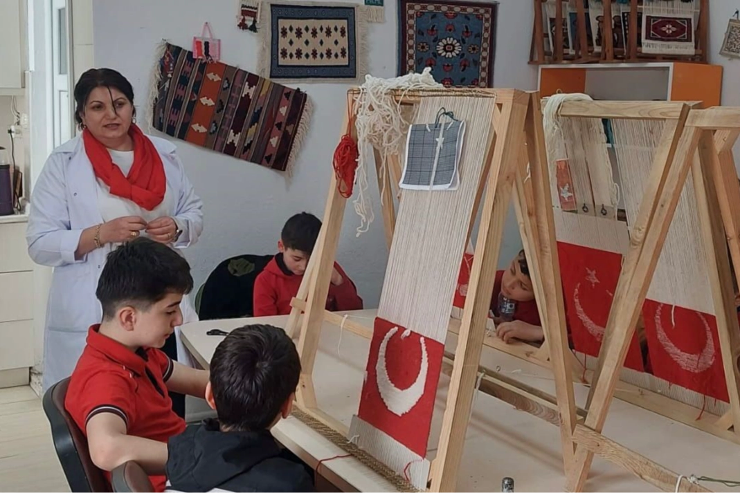 Öğrenciler; geleneksel dokuma sanatını yerinde öğrenerek Türk Bayrağı için ilk ilmeklerini attı. Nevşehir’de geleneksel el sanatlarını yaşatmak ve gelecek nesillere aktarmak amacıyla düzenlenen etkinlik kapsamında Gazi Osman Paşa İmam Hatip Ortaokulu 6. sınıf öğrencileri, öğretmenleri eşliğinde atölyeyi ziyaret etti. Toplam 16 öğrencinin katıldığı programda öğrenciler, dokuma tezgâhlarının başına geçerek halı dokumanın inceliklerini uygulamalı olarak öğrendi. Ziyaretin en anlamlı anları ise Türk Bayrağı dokuması sırasında yaşandı. Kültür ve Turizm Bakanlığı Somut Olmayan Kültürel Miras Taşıyıcısı ve halı-kilim dokuma eğitmeni Fatma Turgut tarafından bilgilendirilen öğrenciler, dünyaca bilinen ve dayanıklılığıyla öne çıkan 'Türk Düğümü' (Gördes Düğümü) tekniğini kullanarak ay yıldızlı bayrağa ilmek attı. Yetkililer; bu tür etkinliklerle gençlere sanat ve kültür bilinci kazandırmayı, aynı zamanda el becerilerini geliştirmeyi amaçladıklarını belirtti. Atölye çalışmalarının farklı yaş gruplarıyla da sürdürüleceği ifade edildi.