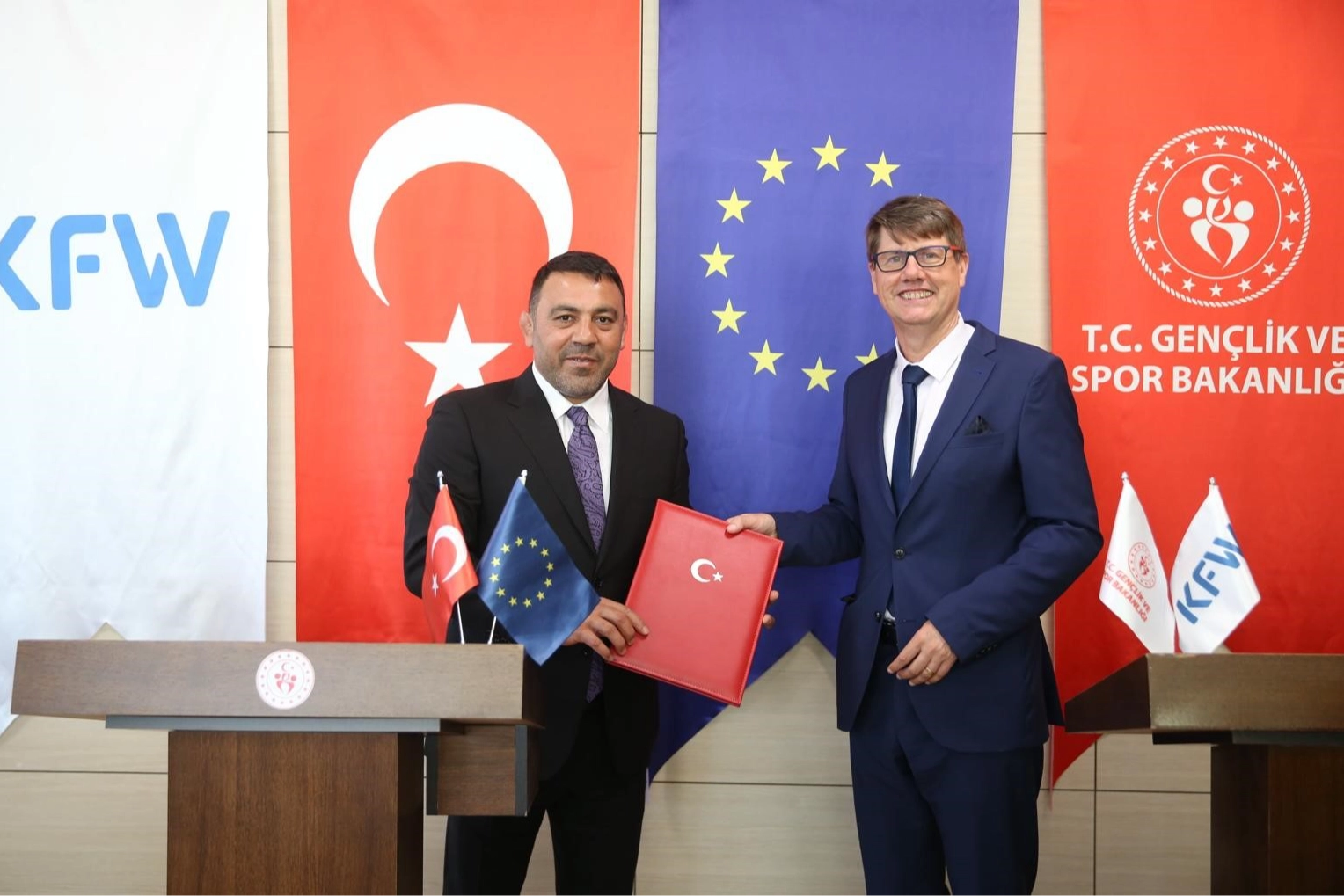 Avrupa Birliği tarafından finanse edilen, Gençlik ve Spor Bakanlığı ile Alman Kalkınma Bankası iş birliğinde yürütülen ‘Korunmasız Gençlerin Daha İyi ve Kapsayıcı Spor ve Gençlik Altyapısı ile Güçlendirilmesi Projesi’nin ikinci aşaması için ek sözleşme imzalandı. Depremde ağır hasar alan ve Suriyeli mültecilerin yoğun yaşadığı bölgelerde 8 yeni tesis yapılacak. Projenin ikinci aşaması için ek sözleşme imzalandı. Gençlik ve Spor Bakan Yardımcısı Hamza Yerlikaya’nın ev sahipliğinde düzenlenen imza törenine, Gençlik ve Spor Bakanlığı, Alman Kalkınma Bankası’nın (KfW) üst düzey yetkilileri katıldı.