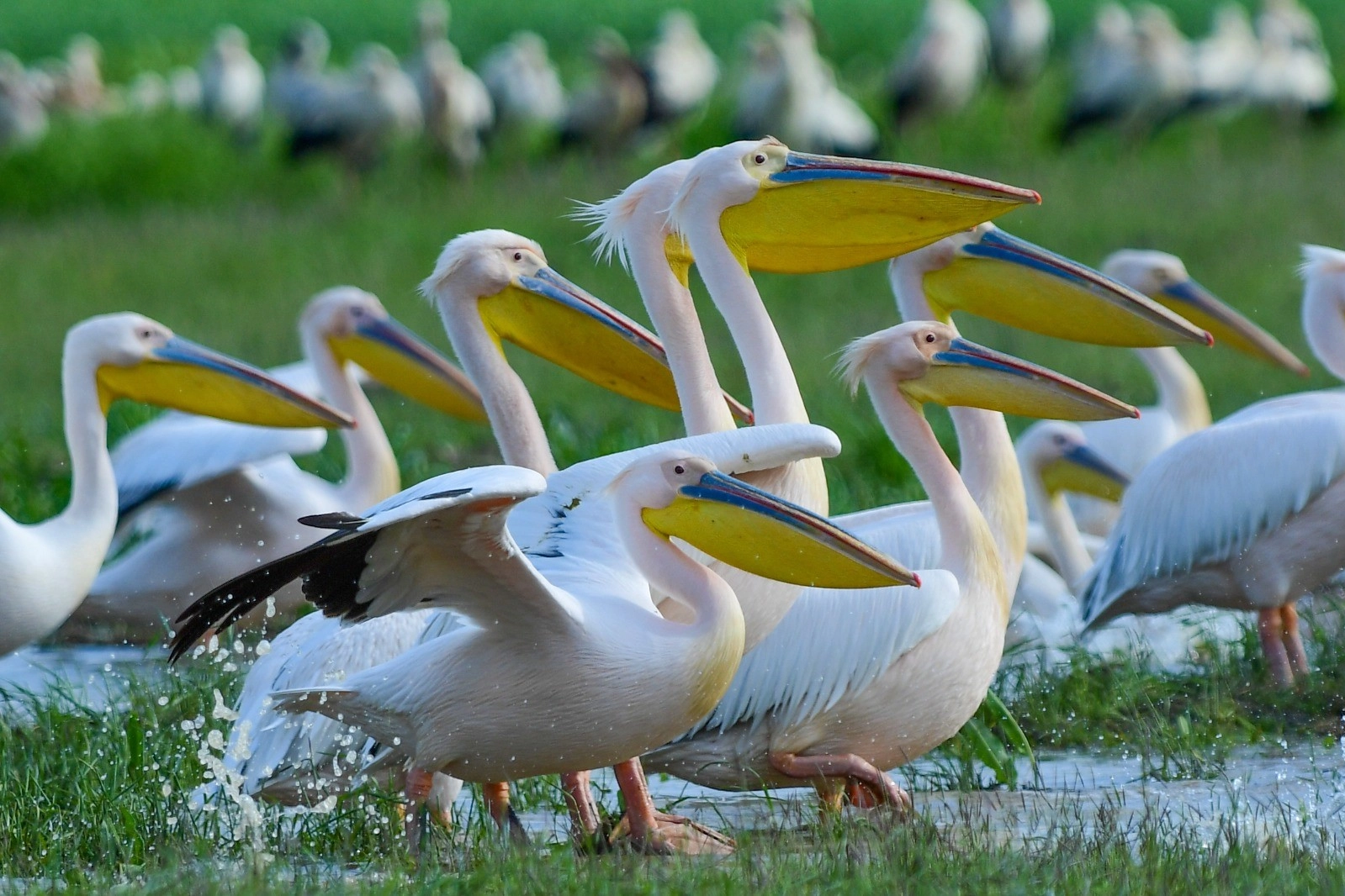 Göç yolundaki pelikan sürüsünün Bursa molası