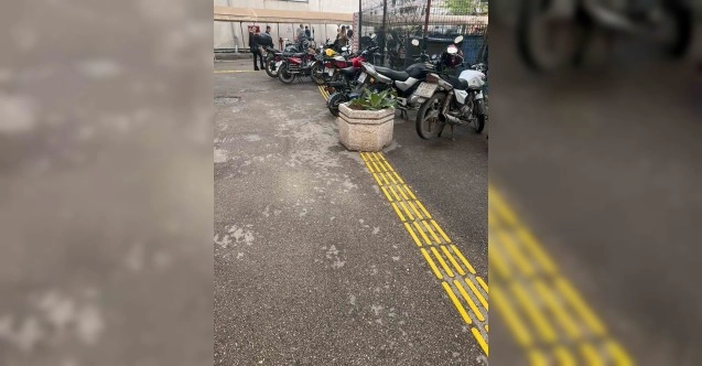 Adana’da görme engelli yolu olarak yapılan kabartmalı sarı yolun ortasına saksı konması ve devamında motosikletlerin park edilmesi görenleri hayrete düşürdü.