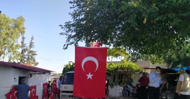 Yayladağı ilçesine bağlı Güveççi Mahallesi nüfusuna kayıtlı şehidin evine ve sokağa Türk bayrakları asıldı.