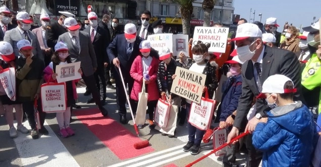 Konuşmaların ardından Bakan Yardımcısı İnce, öğrencilerle birlikte yaya geçidindeki çizgiyi kırmızıya boyadı. Törene ayrıca; Konak Belediye Başkanı Abdül Batur, İl Emniyet Müdürü Hüseyin Aşkın, İzmir İl Milli Eğitim Müdürü Ömer Yahşi ve diğer yetkililer katıldı.