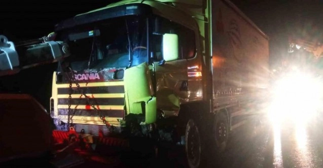 Sakarya’nın Geyve ilçesi D-650 kara yolunda aynı istikametteki iki tırın çarpışması neticesine meydana gelen trafik kazasında uzun araç kuyrukları oluştu.