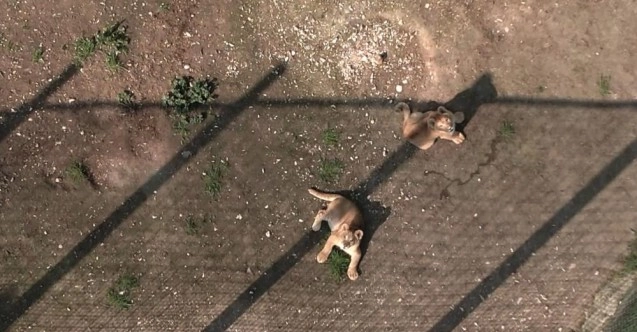 Bursa Hayvanat Bahçesi, binin üzerinde hayvanın yaşadığı 200 dönümlük alanda ziyaretçilerini ağırlamaya devam ediyor. Hayvan barınaklarının yanı sıra 11 gölet, 2 bin ağaç, 50 bin çalı ve 150 bin yer örtüsü bitkisi ile gelenlere nefes alabilecekleri ortam sunuyor. Her gün binlerce insanın ziyaret ettiği hayvanat bahçesinde popülasyon artışı da sürüyor. 3,5 ay önce dünyaya gelen aslanlar, sevimlilikleriyle dikkat çekti. Adaptasyon sürecini anneleriyle birlikte sağlayan 2 yavru aslanın, kısa süre sonra diğer aslanlarla aynı alana salınacağı açıklandı. İçeride 2 dişi, 2 erkek olmak üzere 1,5 ile 2 yaş arasında 4 yavrunun daha olduğu ifade edilirken, minik aslanların dron ile imtihanı ise gülümsetti. Dronun çıkardığı sese odaklanan aslanlar, ne yapacağını şaşırdı. Gönüllerince sağa sola koşuşturan minik aslanların keyfine diyecek yok. Annesinin üstüne binmeye çalışan, onu yakalamaya çalışan aslanlar, daha sonra kafeslerine geri alındı.