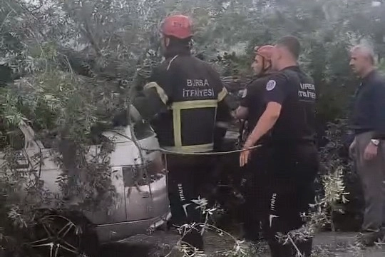 Olay, saat 16.00 sıralarında İnegöl'ün kırsal Alibeyköy Mahallesi'nde bulunan hayvan pazarı mevkiinde meydana geldi. Sürücü, 16 J 9829 plakalı otomobilini yolun kenarına park edip kurbanlık hayvan bakmak için hayvan pazarına girdi. O sırada lodosun etkisiyle bir ağaç kökünden sökülerek, park halindeki aracın üzerine devrildi. Ağacın altında kalan aracı gören vatandaşlar durumu itfaiyeye haber verdi. Olay yerine gelen itfaiye ekipleri, motorlu testere ile ağacı parçalayıp aracı çıkardılar. Araçta maddi hasar meydana geldi.