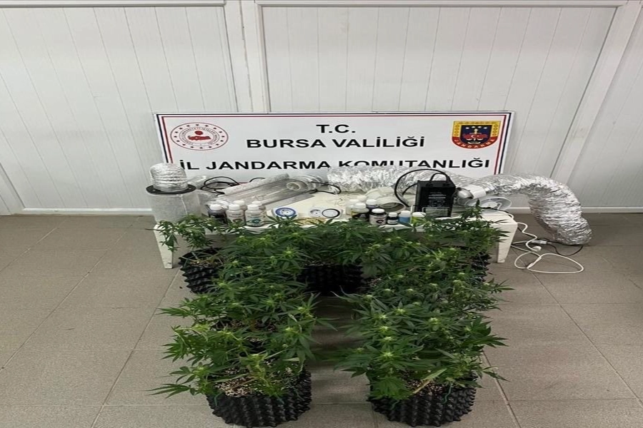 İl Jandarma Komutanlığı ekipleri, 14 Ocak'ta İnegöl ilçesinde bir adrese operasyon düzenledi. Şüpheli şahsın ikametinde yapılan aramada, üretim aşamasında olduğu değerlendirilen 17 kök esrar bitkisi ele geçirildi. Aramalarda ayrıca, 2 adet havalandırma fanı, 1 adet ayarlı priz, 1 adet ısı ayar termostatı, 1 adet aydınlatma lambası ve 1 adet güç kaynağı bulundu. Operasyon kapsamında H.B. (34) isimli şüpheli gözaltına alınırken, olayla ilgili adli işlemlerin başlatıldığı bildirildi.Jandarmadan yapılan açıklamada, uyuşturucu madde ve uyuşturucu ticaretiyle mücadele çalışmalarının, aynı azim ve kararlılıkla sürdürüleceği vurgulandı.