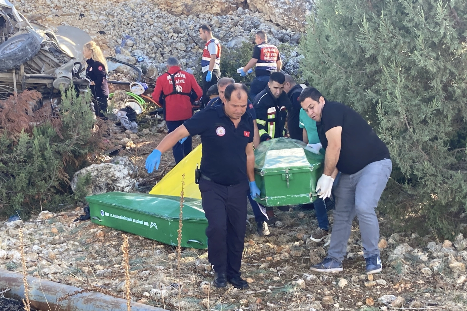 Kazada öldüğü değerlendirilen bir kişiden nabız alınması üzerine şahsın hayata döndürüldüğü ve entübe edildiği öğrenildi. Kaza, 06.40 sıralarında ilçeye bağlı Avgadı Yaylası olarak bilinen Erdemli Güzeloluk ile Sarıkaya Mahalleleri arasında Kargagediği Arkıt mevkiinde meydana geldi. Alınan bilgiye göre, 19 yaşındaki Cemal K. idaresindeki 33 VLP 55 plakalı minibüs, rot milinin çıkması üzerine sürücüsünün direksiyon hakimiyetini kaybetmesi ile yaklaşık 10 metrelik şarampole uçtu. Kazayı görenlerin ihbarı üzerine olay yerine itfaiye, sağlık ve jandarma ekipleri sevk edildi. Minibüste sıkışan yaralılar çıkartılarak ambulanslarla çeşitli hastanelere gönderildi. Olay yerinde yapılan incelemede 4 işçinin öldüğü, 14 kişinin yaralandığı belirlendi. Yaralılardan birinin başta öldü olarak değerlendirildiği ancak nabız alınmasının ardından müdahale edilerek hayata döndürüldüğü öğrenildi. Kaza yapan sürücünün da araçtan yaralı çıktığı ancak ehliyetsiz olduğu tespti edildi. Vali Toros: "4 vatandaşımız olay yerinde hayatını kaybetti" Olay yerinde Mersin Valisi Atilla Toros da inceleme yaparak İl Jandarma Komutanı Tuğgeneral Ercan Atasoy'dan bilgi aldı. Başsağlığı dileyerek kaza ile ilgili bilgi veren Vali Toros, "Sabah saat 06.40 sıralarında Erdemli ilçemize bağlı Sarıkaya Mahallesi Arkıt mevkiinde trafik kazası meydana geldi. Tarım işçilerimizi taşıyan bir minibüs yaklaşık 10 metreden aşağı yuvarlanmış. 4 vatandaşımız olay yerinde hayatını kaybetti, 14 vatandaşımız da hastanelere sevk edildi. Yaralılarımızı da yakından takip ediyoruz. Hepimizin başı sağolsun, son derece üzücü bir kaza" dedi. Ölenlerin kimlikleri belirlendi Öte yandan, olay yerinde savcının incelemesinin ardından cenazeler ilçe devlet hastanesi morguna kaldırıldı. Yapılan kimlik tespitiyle ölenlerin isimleri de belirlendi. Kazada ölenlerin Şerife Karakuş, Mustafa Üstün, Suzan Uğuz ve Münevver Anamurlu olduğu öğrenildi.