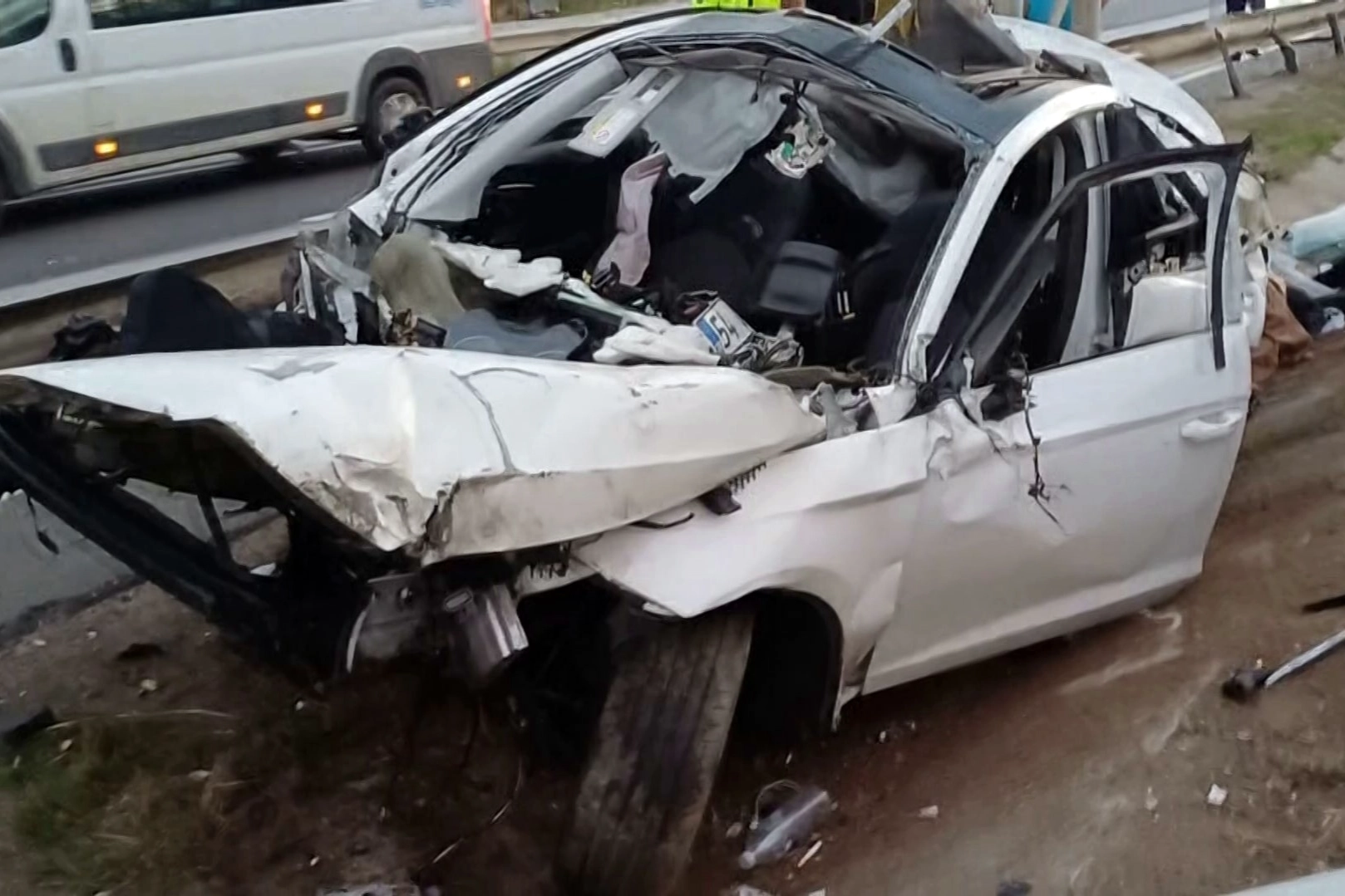 Kontrolden çıkan otomobil bariyerleri aşarak aydınlatma direğine çarptı. Araç adeta kağıt gibi ezilip parçalara ayrılırken, sürücü dışarı fırlayıp otomobilin altında kaldı. Feci kazada 1 kişi ağır yaralandı.