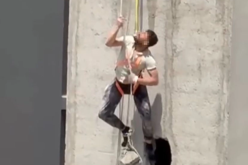 Olay, merkez Mezitli ilçesi Tece Mahallesi'ndeki inşaat halindeki 10 katlı bir binada meydana geldi. Edinilen bilgiye göre, iskelede 6. katta çalışan bir işçi, halatın aniden kopmasıyla birlikte metrelerce yükseklikte havada asılı kaldı. Emniyet halatı bağlı olan işçi, 5. kat seviyesinde dakikalarca yardım bekledi. Bir süre sonra emniyet halatının ani bir gevşemesiyle işçi hızla aşağıya doğru kaydı ancak 1. kat seviyesinde tekrar durdurdu. Büyük panik yaşayan olayda işçi yara almadan kurtarıldı.