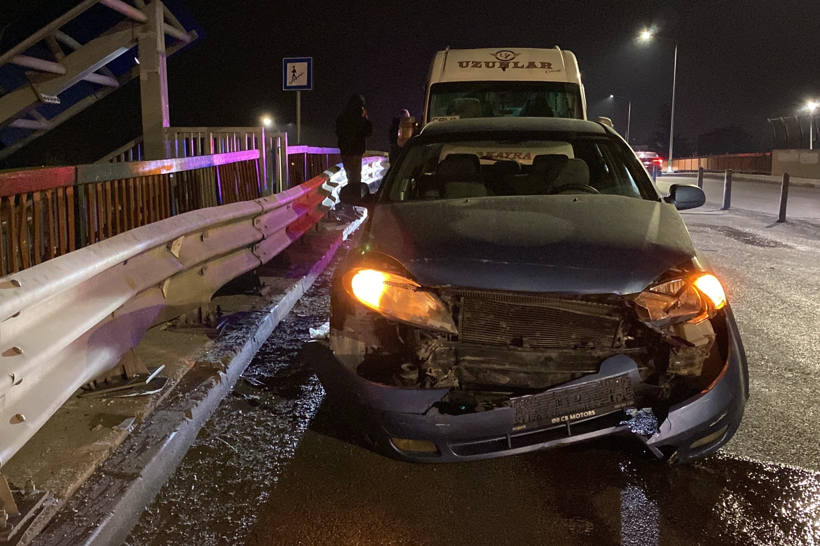 Olay, dün akşam saat 23.00 sıralarında Sümer Köprüsü üzerinde meydana geldi. Edinilen bilgilere göre; Basın Şehitleri Caddesi istikametinden Çilem Caddesi'ne doğru seyir halinde olan M.A. isimli şahsın idaresindeki 06 AL 1767 otomobil, ıslak zeminin etkisiyle sürücüsünün kontrolünden çıktı. Kayan otomobil önce R.A. isimli şahsın idaresindeki 26 S 2027 plakalı servis aracına, ardından bariyerlere çarptı. Yaşanan çarpışmanın etkisiyle otomobilin ön tarafı adeta paramparça olurken, servis aracında ufak çaplı maddi hasar oluştu. Otomobilde yolcu olarak bulunan F.K.A. isimli kadın şahıs hafif şekilde yaralandı. Yaralı kadın hastaneye kaldırıldı İhbar üzerine olay yerine polis ve sağlık ekipleri sevk edildi. Yaralı olan F.K.A., sağlık ekiplerinin ilk müdahalesinin ardından ambulansla Yunus Emre Devlet Hastanesi'nde tedavi altına alındı. Kadının genel sağlık durumunun iyi olduğu öğrenildi. Öte yandan kaza sebebiyle aksayan trafik ise, polis ekiplerinin olay yerini fotoğraflaması ve araçların hareket ettirilmesinin ardından normale döndü. Olayla ilgili inceleme başlatıldı.