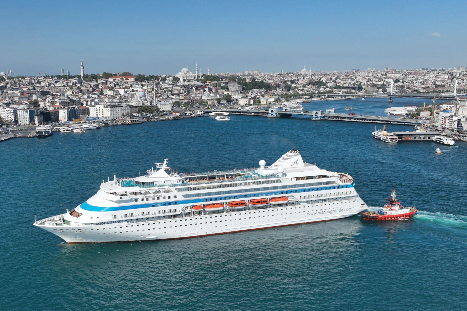 Yaz mevsiminde İstanbul’da oldukça hareketli olan yolcu gemisi turizmi giderek daha fazla rağbet görüyor. 4 gün önce Samsundan yola çıkan Astoria Grande dün İstanbul Sarayburnu limanına yanaştı. Dev yolcu gemisi bin 186 yolcu kapasiteline sahip. 1996 yılında üretilen gemi yıllar içerisinde farklı şirketler tarafından satın alındı. En son Rus denizcilik şirketi tarafından satın alınarak işletiliyor. Dev geminin yanaşmasında Kıyı Emniyetine bağlı Römorkör eşlik etti. Boğaz limana gelişi havadan çekilen görüntülerle tüm heybeti gözler önüne serildi. Yolcu gemisi ile gelen turistler limanda otobüsler ile şehir turlarına çıkartılıyor, Kapalı çarşı başta olmak üzere şehrin sembol mekanlarına ve alışveriş yerlerine götürülüyorlar.