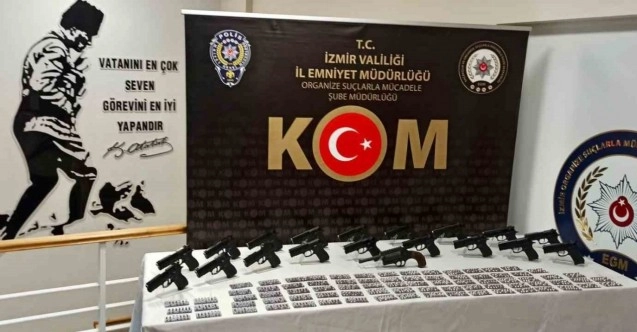 İzmir İl Emniyet Müdürlüğü Organize Şube Müdürlüğü ekipleri, ilçede suç ve suçlularla mücadelesine hız kesmeden devam ediyor. Ekipler, İzmir’de S.Ö., B.U., G.G., G.Ö. ve H.A. isimli şahısların kurusıkı silahların namlularını açmak suretiyle satışa sundukları ve böylelikle silah ticareti yaptıklarını tespit etti. Bunun üzerine harekete geçen ekipler daha önceden belirlenen adreslere operasyon düzenledi. Operasyonda 5 şüpheli yakalanarak gözaltına alınırken, adreslerde yapılan aramalarda ise 30 adet tabanca, 130 adet tabanca fişeği, 1 adet havan fişeği, çok sayıda silah yapımında kullanılan metal parçalar, bin 64 adet sentetik uyuşturucu madde ele geçirildi.