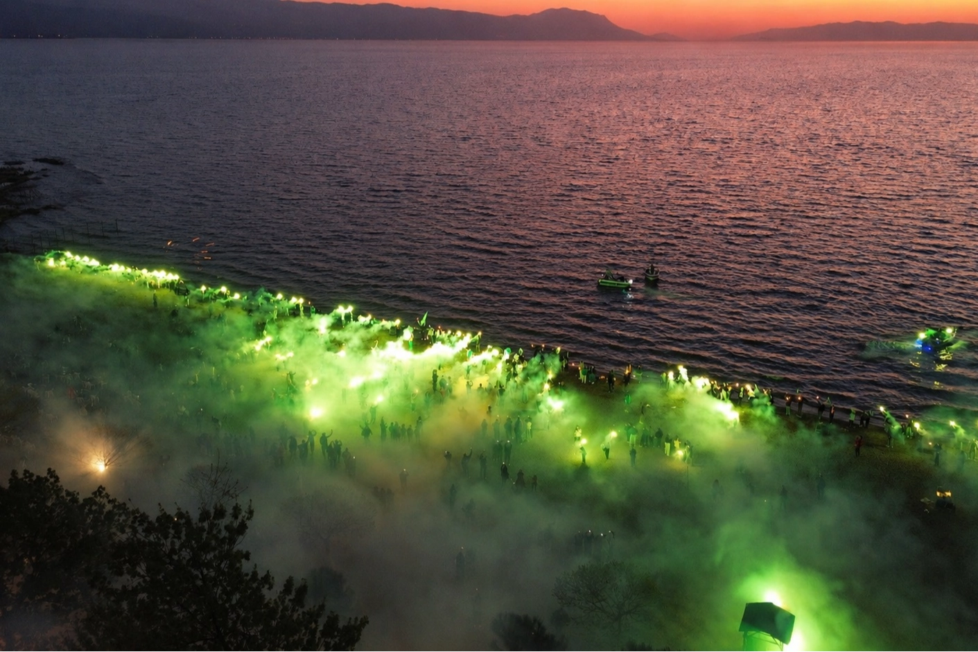 İznik Bursasporlular Derneği tarafından organize edilen şampiyonluk kutlamasında yeşil-beyaz renklere gönül veren çok sayıda taraftar bir araya geldi. İznik sahilinde gerçekleştirilen kutlamalarda meşaleler yakılırken, marşlar ve tezahüratlar eşliğinde büyük coşku yaşandı. Sahil boyunca oluşan yeşil-beyaz atmosfer renkli görüntülere sahne oldu.