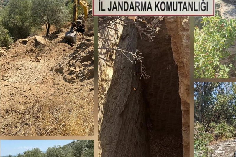 Olay, Söke ilçesi Çalıköy Mahallesi'nde meydana geldi. Edinilen bilgiye göre jandarma ekipleri sit alanı içerisinde iş makinesi ile kazı yapıldığını tespit etti. Bölgeye giden ekipler, yaptıkları incelemede M.Ö. ve M.C. isimli 2 şüphelinin tarihi eser bulmak amacıyla birinci derece sit alanı içerisinde iş makinesi ile kaçak kazı yaptıklarını belirledi. Suçüstü yakalanan 2 şüpheli gözaltına alınırken, haklarında başlatılan adli süreç devam ediyor.