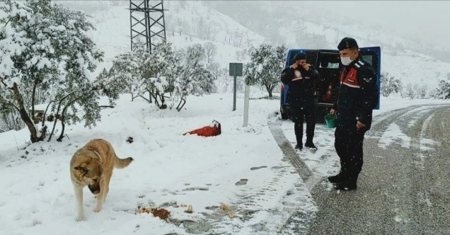 Karayolları ekipleri ile koordineli olarak yolun açılması için çalışmalara başlayan jandarma ekipleri, yolda kalan vatandaşları kurtarmak için harekete geçti. Bu esnada hayvanları da unutmayan jandarma personeli, hayvanların aç kalmamaları için araziye kuru mama, ekmek gibi yiyecek malzemeleri bıraktı.