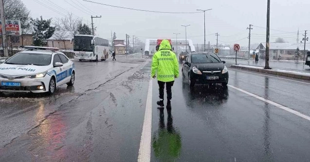 Avrupa ile Anadolu’yu birbirine bağlayan en önemli karayolu geçişi olan Bolu Dağı’nda sabah saatlerinde başlayan kar yağışı etkili olmaya başladı. Düzce Emniyet Müdürlüğü Bölge Trafik Denetleme Şube Müdürlüğü ekipleri de Bolu Dağı çıkışında önlemlerini artırdı. Bolu Dağı’nın çıkış noktası olan Kaynaşlı’da önlem alan ekipler özellikle kar lastiği takma zorunluluğu olan tırlar, kamyon ve otobüslerde denetimlerini artırdı. Ulaşımda sorun yaşanmaması için yoğun çalışan polisler, yük ve yolcu taşımacılığı yapan araçlarda kar lastiği denetimi yaparak, sürücülerin Bolu Dağı’nı çıkmasına izin veriyor.