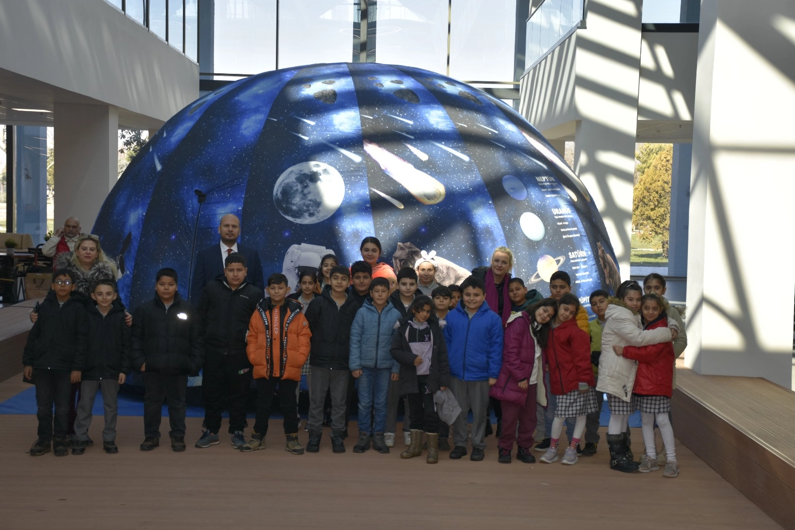 Karacabey Belediyesi, Hibu Planetarium iş birliğiyle düzenlenen Uzay Gözlem Çadırı etkinliği ile çocuklara unutulmaz bir uzay deneyimi yaşatıyor. 24-28 Şubat tarihleri arasında gerçekleştirilecek bu etkinlikte ana sınıfı ve ilkokul öğrencileri, gökyüzünün ötesine uzanan bir keşif yolculuğuna çıkacaklar. Belediye Başkanı Fatih Karabatı, “Bu tür etkinliklerle çocuklarımızın bilime olan ilgisini artırmayı ve onların hayal güçlerini geliştirmeyi hedefliyoruz.” dedi. Hibu Planetarium Yetkilileri Hilal Gündüz ve Buse Cavlak öncülüğünde Uzay Gözlem Çadırı’na giren minikler, kendilerini bir anda yıldızların arasında süzülen kaşifler gibi hissediyor. Öğrenciler, Güneş Sistemi’ni yakından tanıyor, gezegenler hakkında şaşırtıcı bilgiler öğreniyor ve evrenin bilinmeyen köşelerine doğru heyecan verici bir yolculuğa çıkıyor. Tüm anlatımlar, çocukların yaş seviyelerine özel olarak hazırlanıyor ve içeride bir Fen Bilgisi öğretmeni onların sorularına rehberlik ediyor. Etkinliğin açılışına katılan Karacabey Belediye Başkan Yardımcısı Bora Akın da öğrencilerin heyecanına ortak oldu.