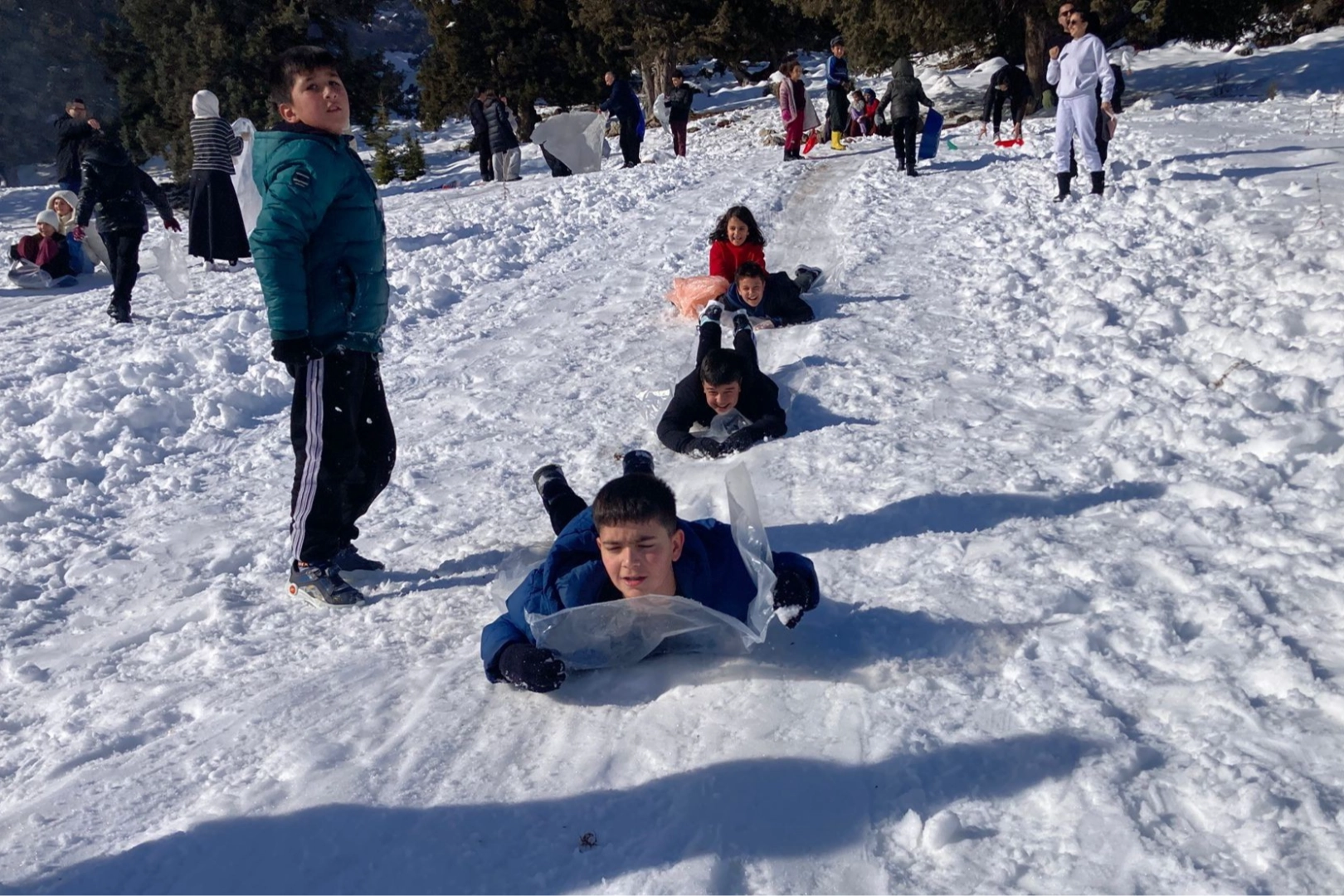 Türkiye’nin önemli turizm merkezlerinden Mersin'in merkezi ve ilçelerinde kar yağışı etkili olmazken, yüksek rakımlı bölgelerini beyaza büründü. Merkezlerden yaşayanlar ise yüksek rakımlı bölgelere akın etti. Erdemli'den Anamur ilçesinde kadar bin rakım üzerinde Torosların eteğinde etkili olan kar yağışını değerlendiren aileler, çocuklarıyla birlikte doyasıya vakit geçirdi. Kardan adam yapıp, kar topu oynayanların yanı sıra bazı çocuklar leğen ve naylonlarla kayarak beyaz güzelliğin tadını çıkardı. Çocuklar karda oynamanın çok güzel olduğunu belirtirken, aileler de güzel vakit geçirdiklerini anlattı. Sömestir tatilini fırsat bilerek çocuklarla Adana'dan Mersin'e geldiklerini belirten Fatma Aksu, "Kar görmeye geldik. Erdemli'nin yükseklerinde çok güzel gezilecek yerler keşfettik. Çocuklarla çok eğlendik, burası çok güzel" dedi.