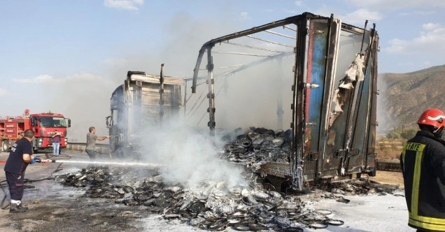 Edinilen bilgiye göre, İstanbul’dan aldığı mutfak eşyalarını Gürcistan’a götürmek üzere yola çıkan yabancı uyruklu sürücünün kullandığı yabancı plakalı tır, Kastamonu’nun Tosya ilçesine geldiği sırada Zincirli Kuyu köyü mevkisinde seyir halindeyken bilinmeyen bir nedenle yanmaya başladı. Kısa sürede alevler tüm tırı kapladı. Alev alev yanan tıra Tosya ve Kargı itfaiye ekipleri müdahale etti. Tamamen yanan tır kullanılamaz hale gelirken, jandarma ekiplerince çevre güvenlim önlemleri alınarak incelemelerde bulunuldu. İtfaiye ekiplerinin yanan tırda soğutma çalışmaları halen sürüyor.