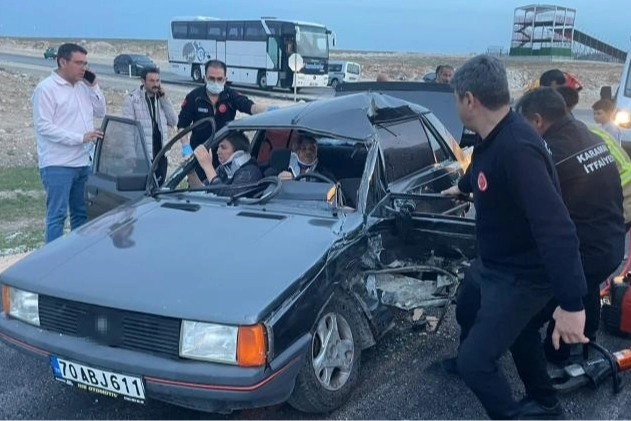 Kaza, akşam saatlerinde Hamidiye Mahallesi yeni çevre yolu üzerindeki kavşakta meydana geldi. Edinilen bilgiye göre, Emin Ü. idaresindeki 70 FL 349 plakalı kamyonet ile İsa T. (67) yönetimindeki 70 ABJ 611 plakalı otomobil kavşakta çarpıştı. Kazada otomobil sürücü İsa T. ile yanındaki eşi Gülseren T. (54) araç içerisinde sıkışırken, kamyonette yolcu olarak bulunan bir kişi de yaralandı. İhbar üzerine olay yerine sağlık, itfaiye ve polis ekipleri sevk edildi. Otomobilde sıkışan karı koca, ekiplerin uzun uğraşları sonucu sıkıştıkları yerden kurtarılarak sağlık ekiplerine teslim edildi. Yaralılar, olay yerindeki ilk müdahalelerinin ardından ambulanslarla Karaman Eğitim ve Araştırma Hastanesi’ne kaldırılarak tedavi altına alındı. Kazayla ilgili tahkikat başlatıldı.