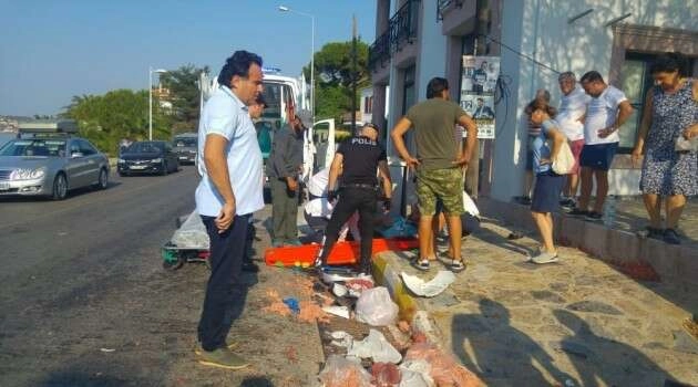 Edinilen bilgiye göre, Çamlık istikametinden ilçe merkezine giden Nazmi İde kontrolündeki 10 YT 355 plakalı motosiklet, Sarımsaklı istikametine giden Görkem Bilal T. kontrolündeki 39 NT 283 plakalı otomobille Ayvalık Kaymakamlığı lojmanları önünde çarpıştı. Kasap dükkanında çalışan ve bir müşterinin siparişlerini götürdüğü öğrenilen motosikletli kazada yaralanırken, et ve kıymalar da yola savruldu.